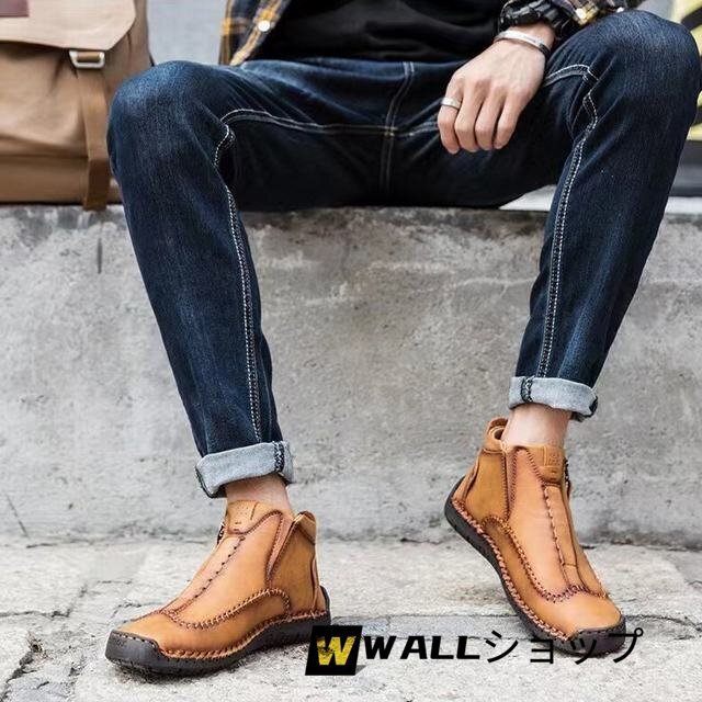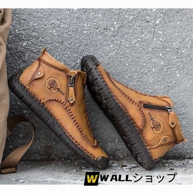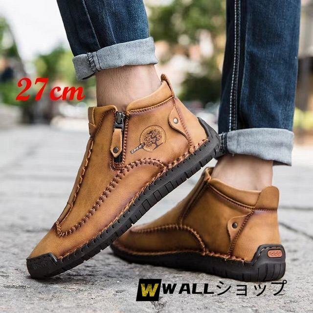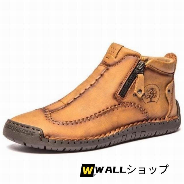 ブーツ メンズ メンズシューズ 革靴 ハイカット アウトドア ぺたんこ 軽量 仕事 歩きやすい 通勤 カジュアル 四季兼用 カーキ27cm
