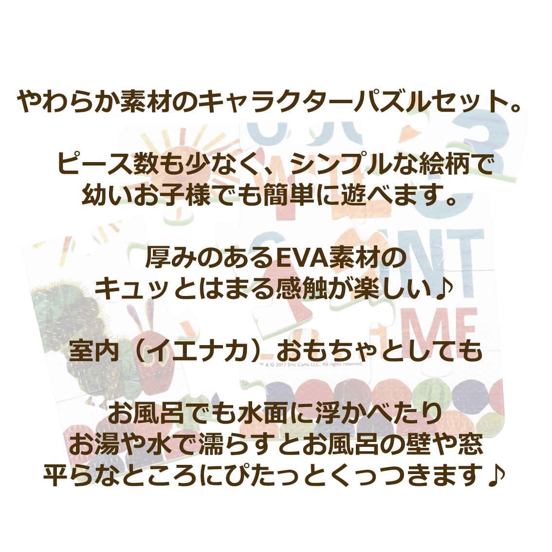 大好きなキャラクターと一緒に楽しく遊べるやわらかパズル!柔らかいEVA素材を使用しているので、小さなお子さまでも安心して扱えます。濡れても大丈夫だから、お風呂遊びにも最適。お子さまの手先の発達や集中力を育む遊びとして、またギフトにもおすすめです。STマーク取得済み材質:EVA安心のSTマーク取得日本玩具協会の安全基準をクリアした安心設計。サイズ:約W255×H260×D10mm重量:約62gキャラクターデザインの楽しいパズルお子さまが大好きなキャラクターと一緒に遊べる。やわらかEVA素材で安心軽くてやわらかいので、小さな手でも安全に扱える。お風呂でも遊べる耐水性水に強い素材だから、バスタイムも楽しい知育時間に。知育おもちゃとして、手先の器用さや集中力を育むのに役立つ。持ち運びやすいコンパクト設計本体サイズ:約W255×H260×D10mm、重量約62gで、お出かけにも便利。ぴたぴたパズル ジグソーパズル パウパトロール パウパト はらぺこあおむし お風呂 嫌い 遊び おもちゃ 道具 スポンジ シート 簡単 優しい 易しい 簡単 12ピース アンパンマン 3歳 2歳 1歳 数字 日本 車