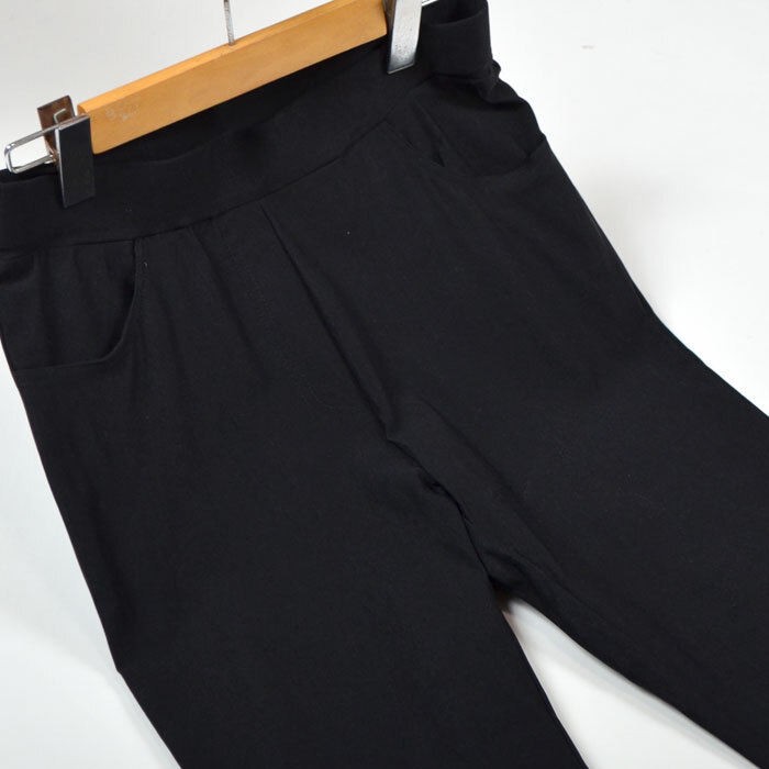新品☆M~L ストレッチ パンツ レディース レギンス ポケット付 ボトムス 美脚 きれいめ ミセス ボトムス/ブラック 黒/メール便可/C05-101