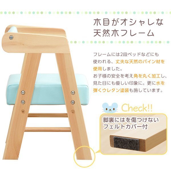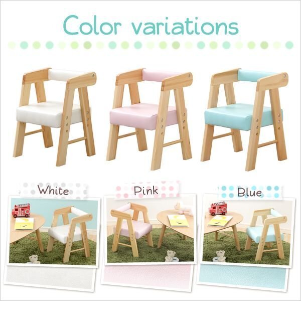 場所を取らないコンパクトサイズのキッズチェア! 丈夫な天然パイン材フレームで安心設計です。 座面は高さ調節可能でお手入れ簡単です。 カラーは3色展開です。 |