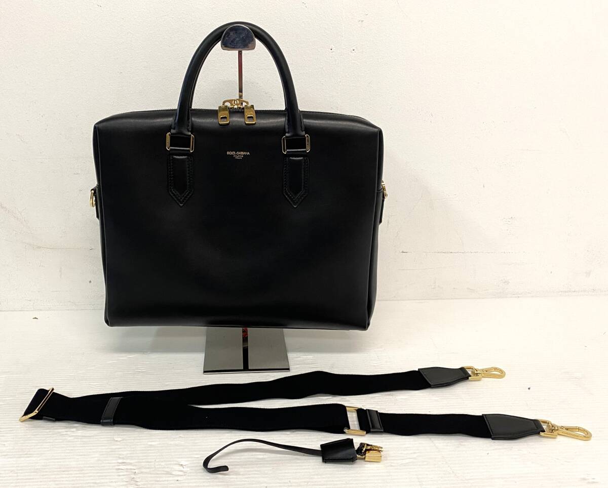 ★☆【1円スタート】き8 DOLCE&GABBANA ドルチェアンドガッバーナ ビジネスバッグ レザー ブラック ベルト・カギ付き メンズバッグ☆★