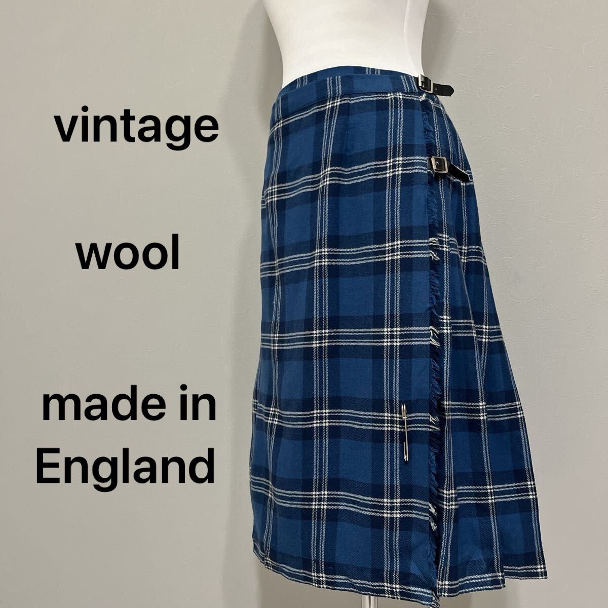 英国製 ウールタータンチェックスカート/ピュアニューウール100%