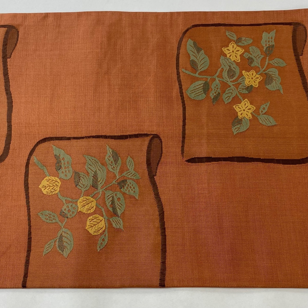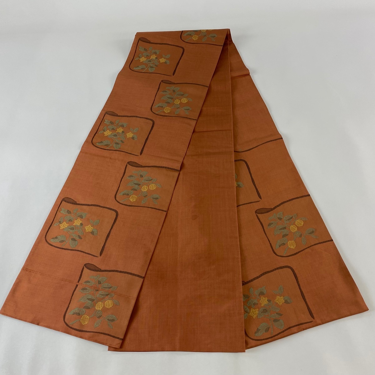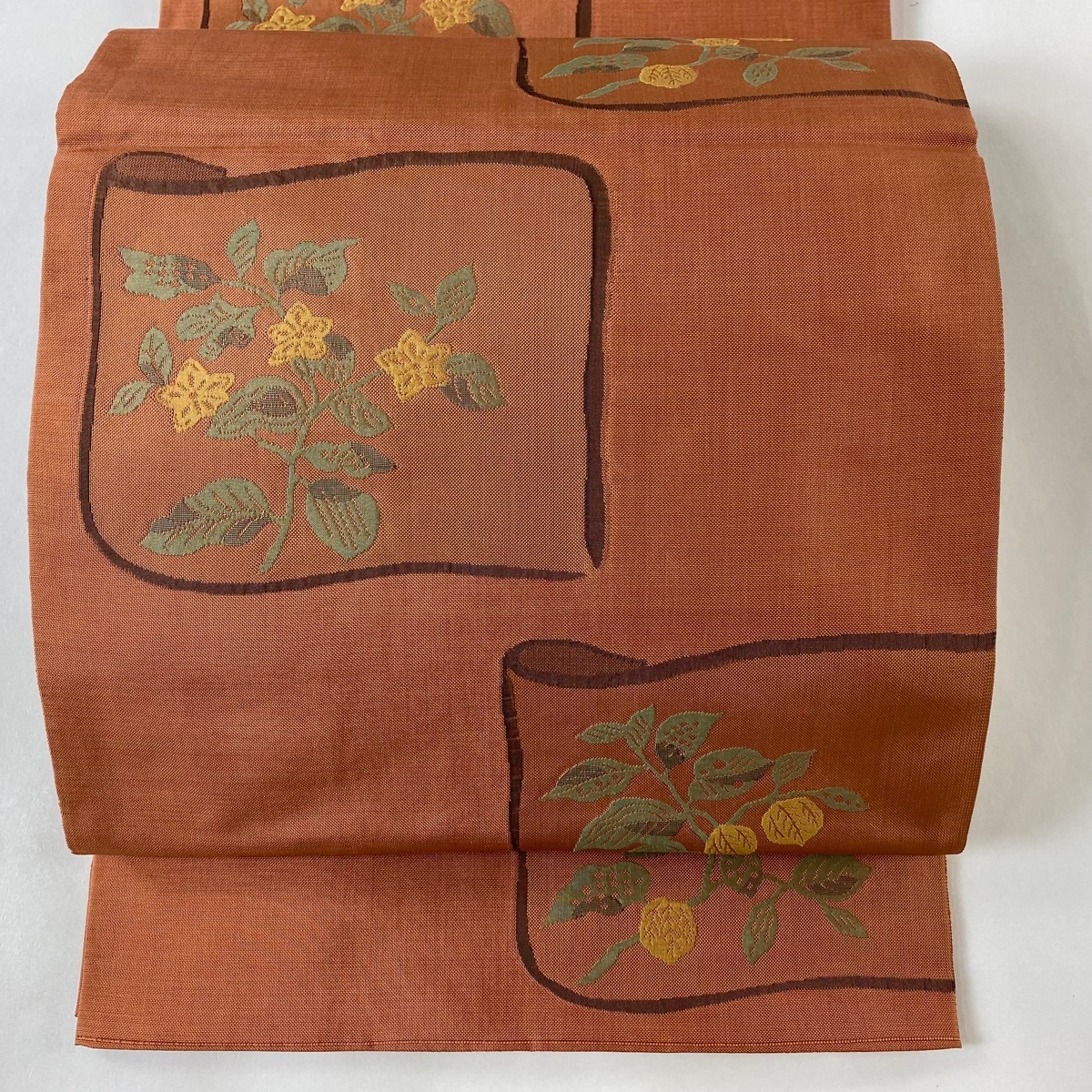 | 袋帯 秀品 木屋太 落款 草花 枝葉 朱色 六通 正絹 【中古】 |