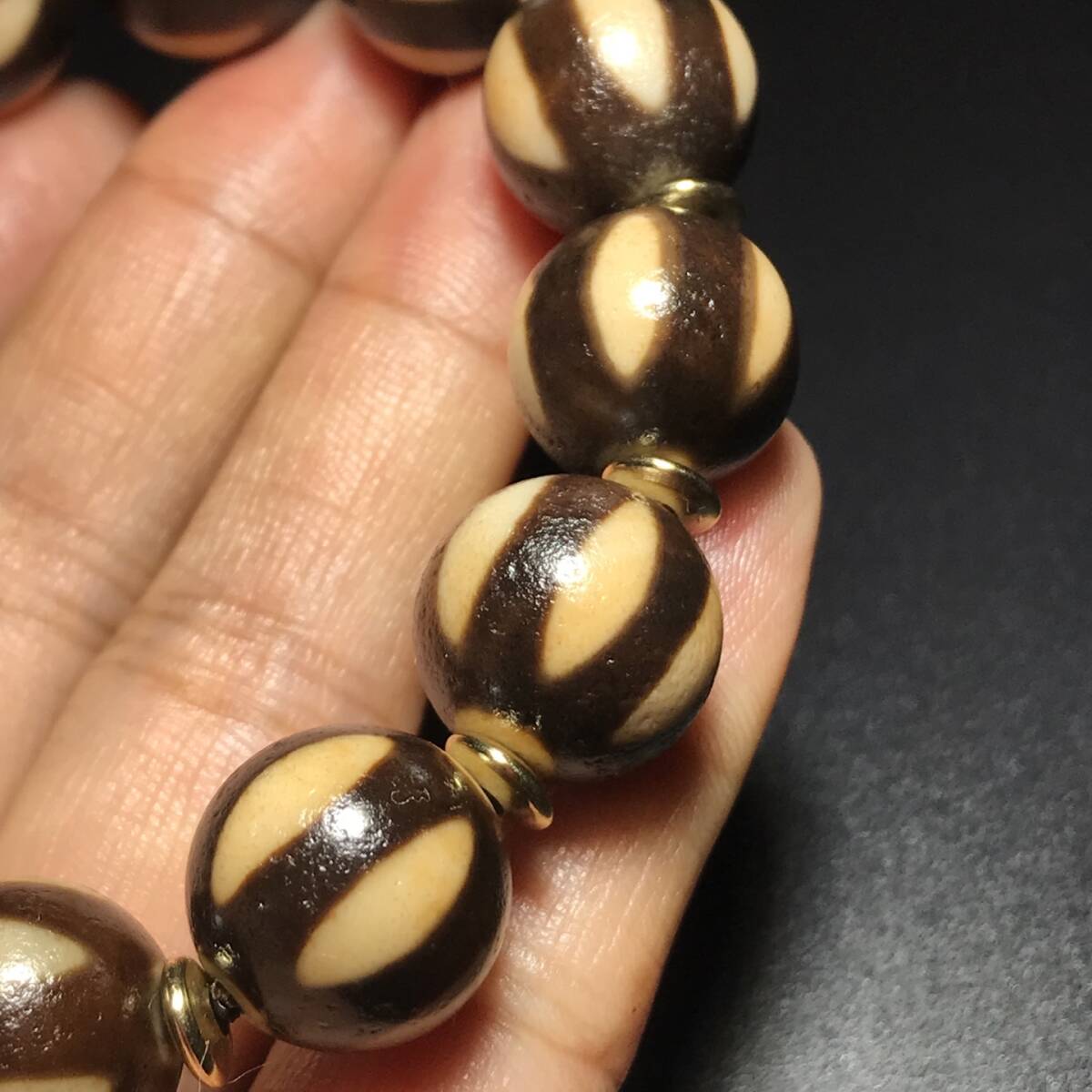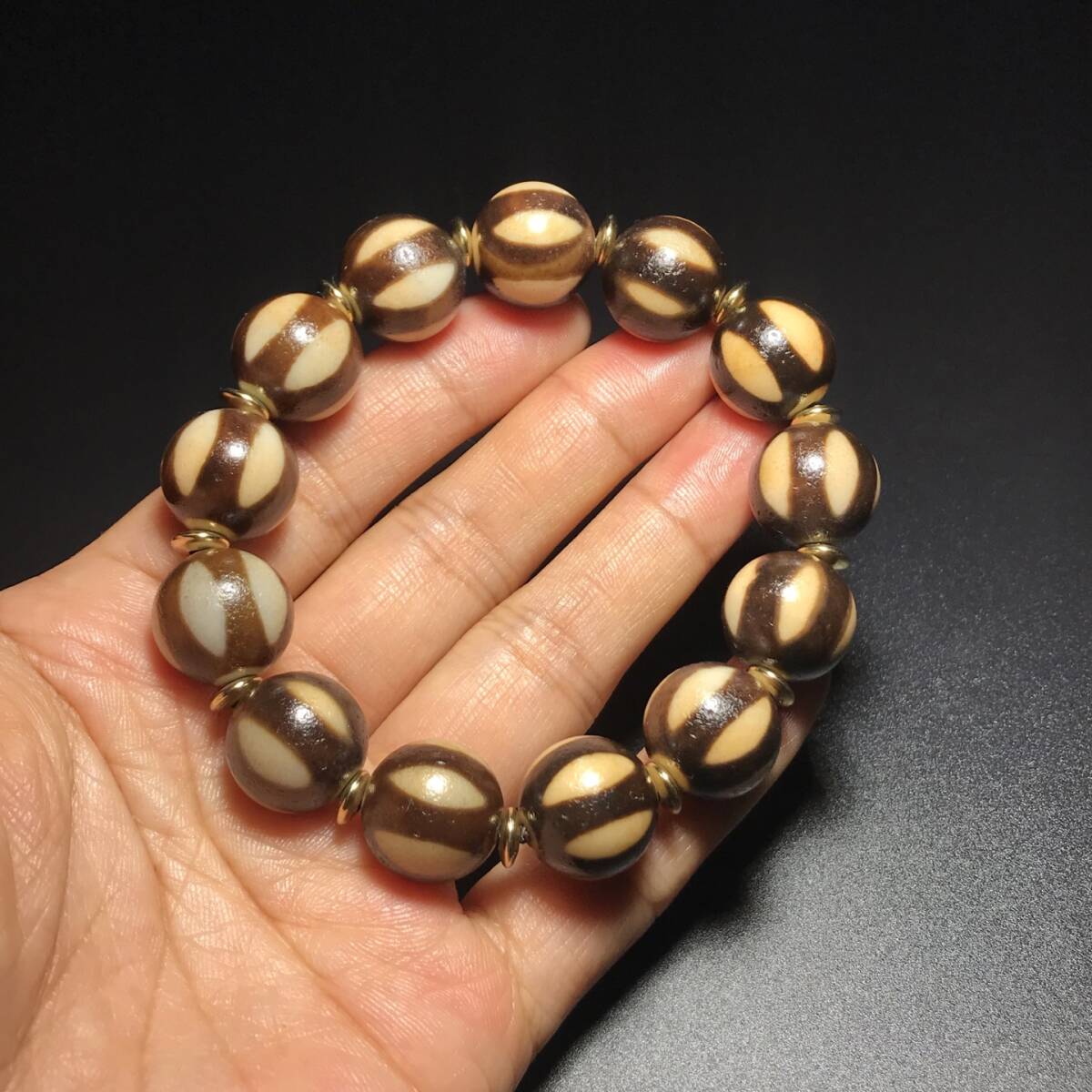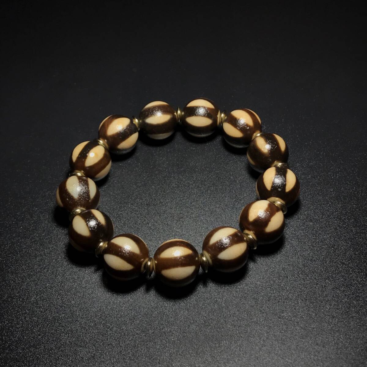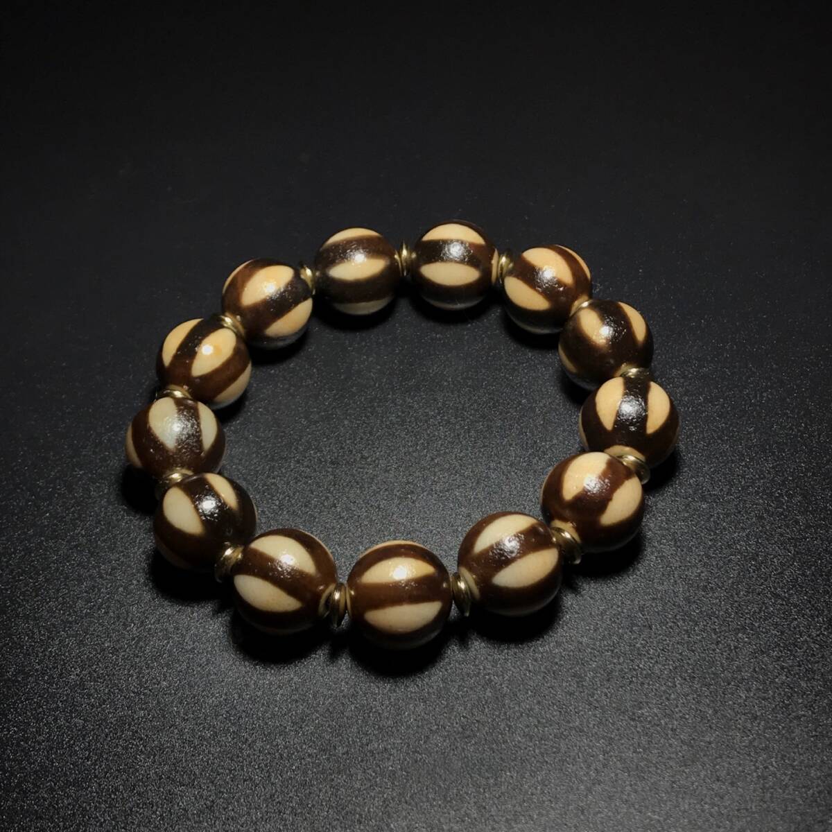 中国骨董 和田玉【上質な古瑪瑙メロンビーズDziブレスレット】【インボイス登録済】印章 彫刻品 時代物 本物 古美術 旧蔵 珍品