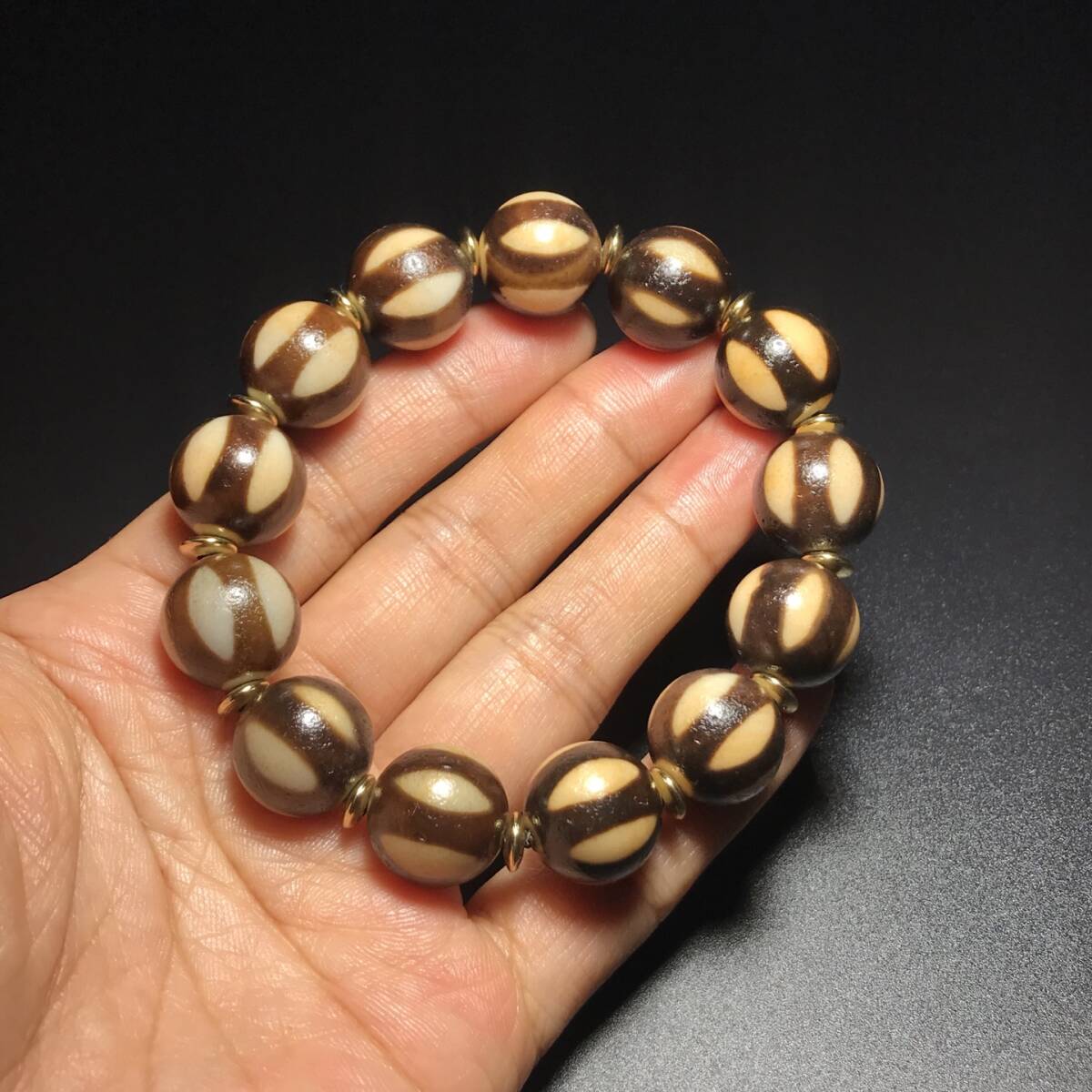 207213 中国骨董 和田玉【上質な古瑪瑙メロンビーズDziブレスレット】印章 彫刻品 時代物 本物 古美術 旧蔵 珍品