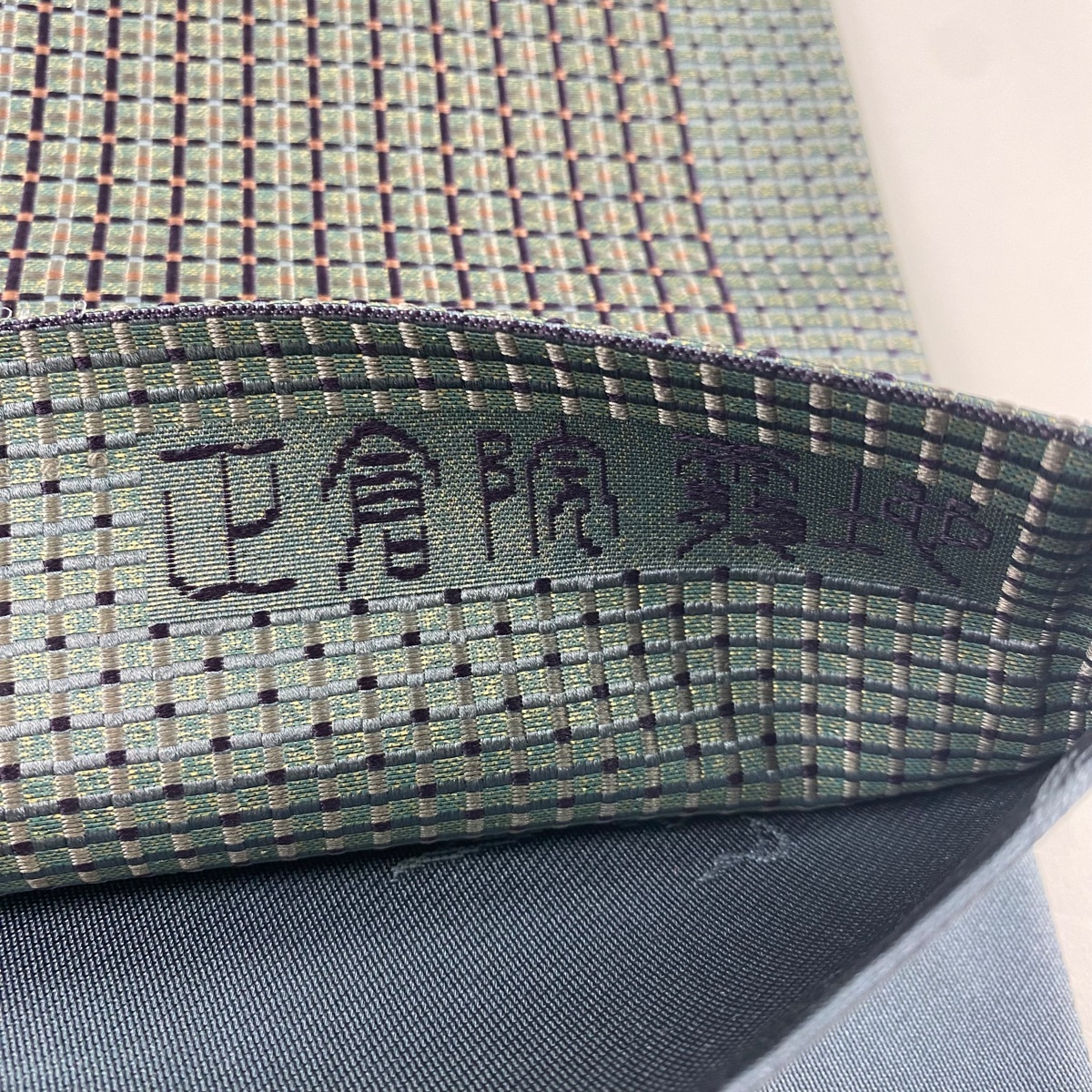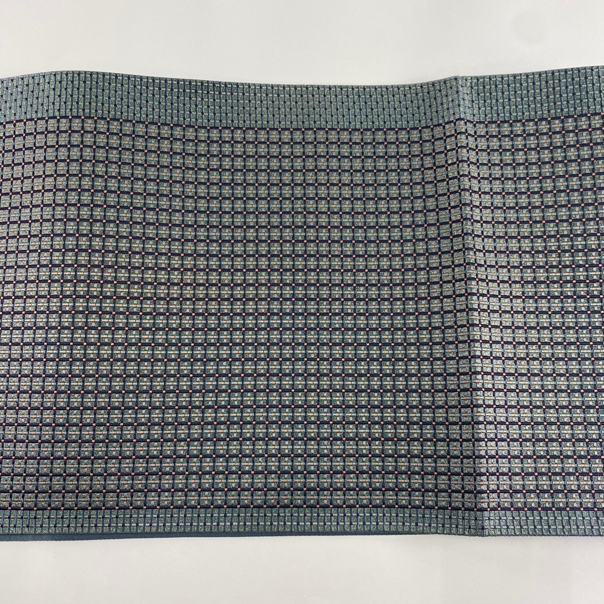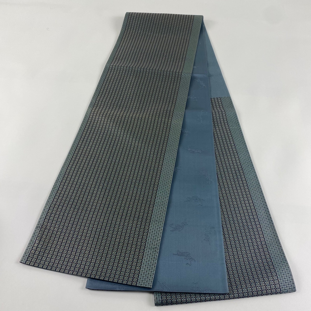 | 袋帯 名品 格子 箔 灰緑 六通 正絹 【中古】 |