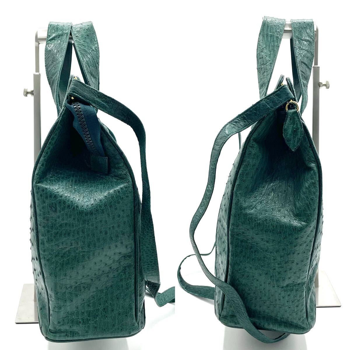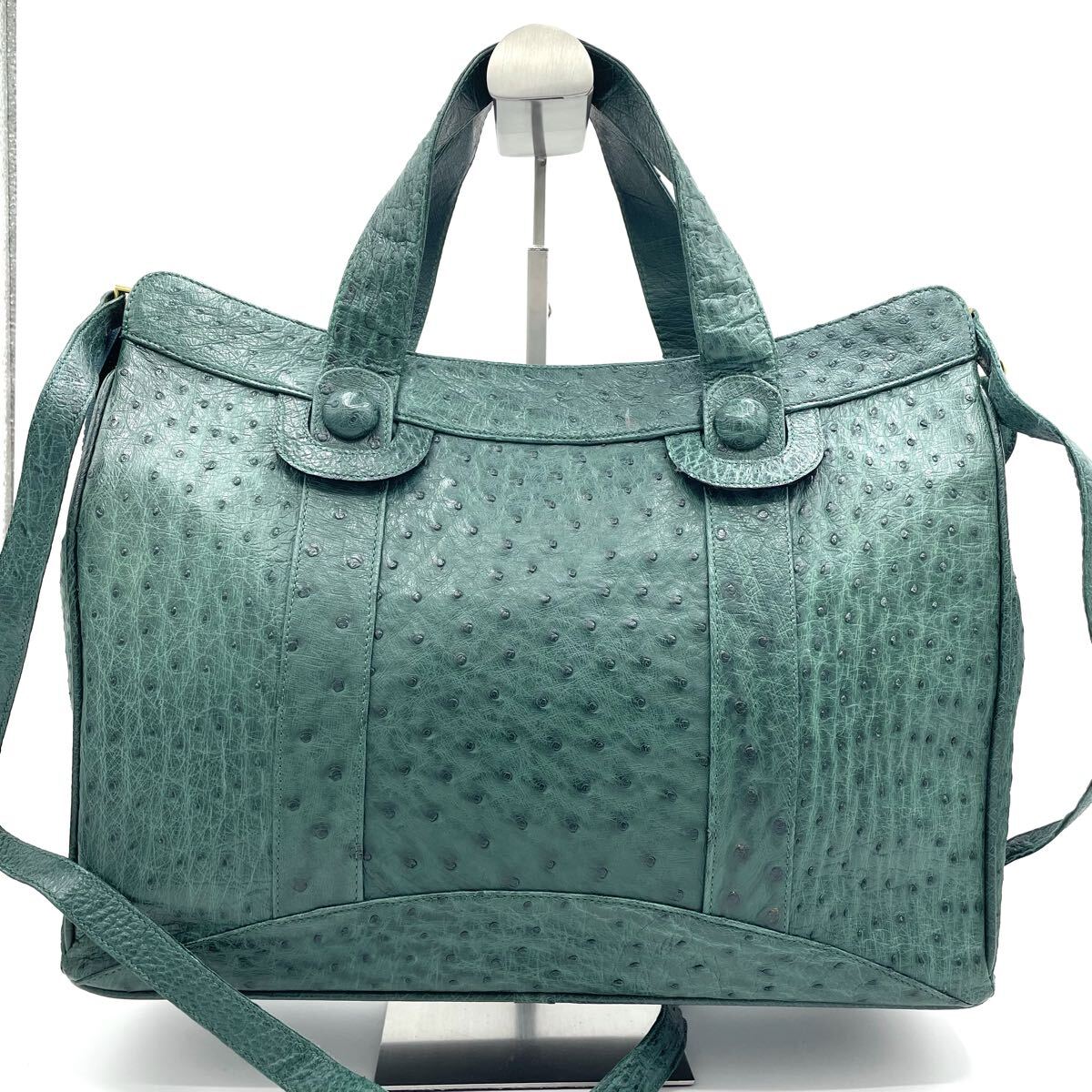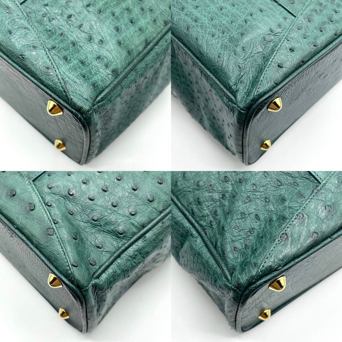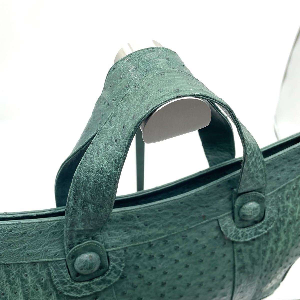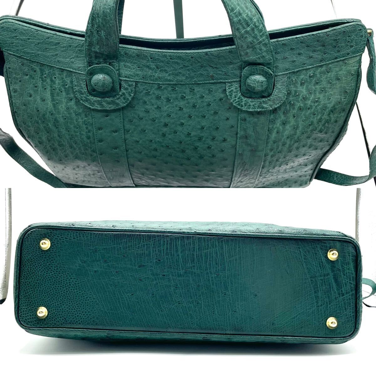【A4可 美品】 オーストリッチ トートバッグ 2way ショルダー 斜め掛け エキゾチックレザー ダチョウ革 駝鳥 グリーン 緑 レディース 2470