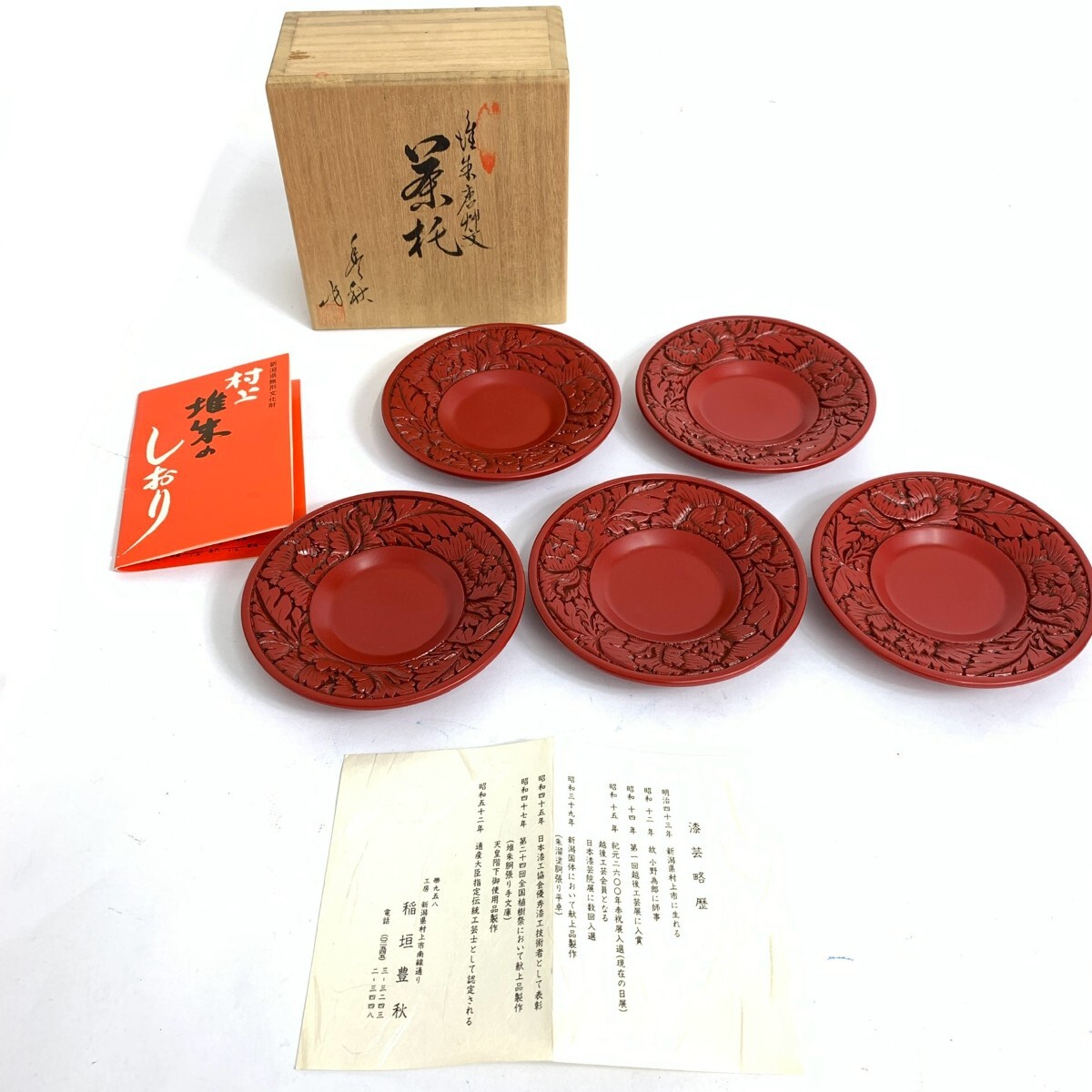 村上堆朱/稲垣豊秋/茶托 5客組 |
