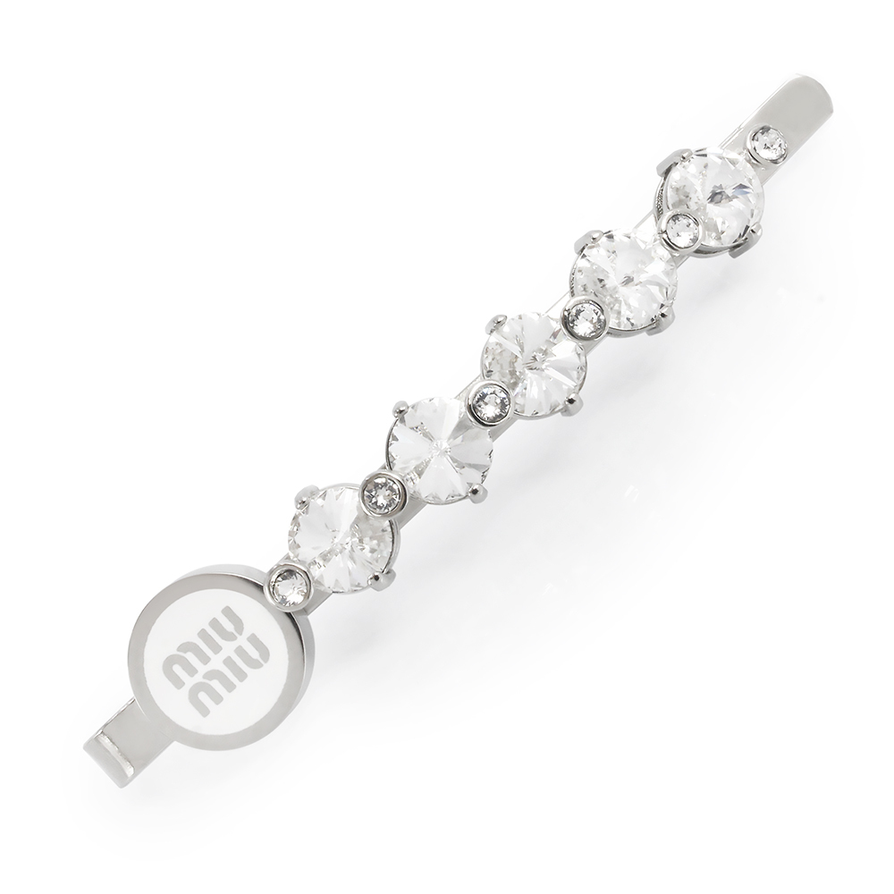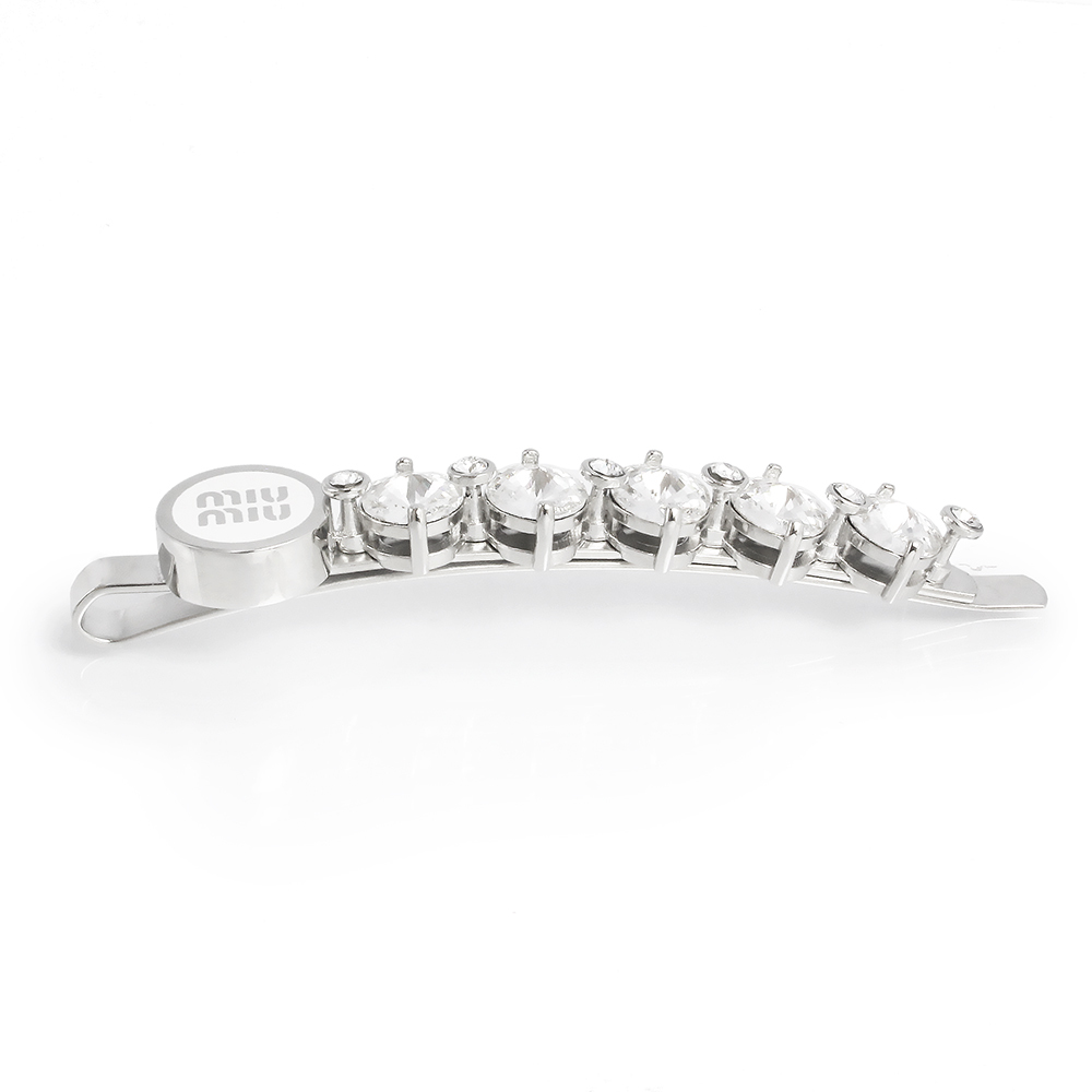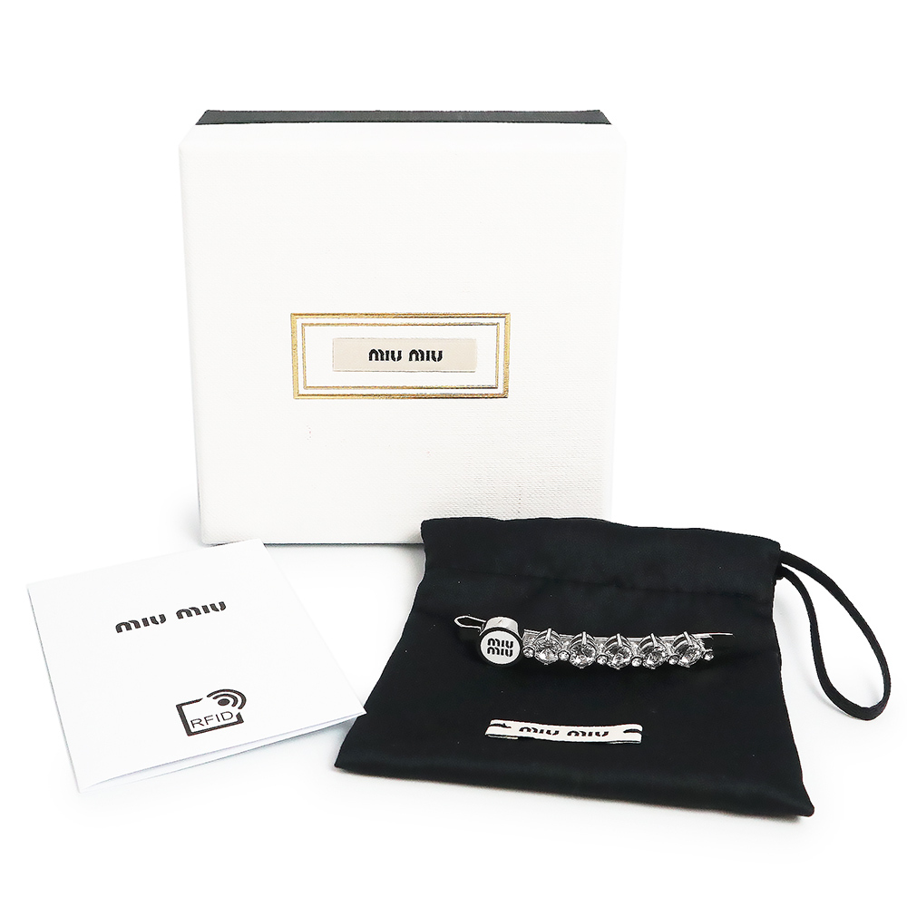 (新品・未使用品)ミュウミュウ miu miu ロゴ クリスタル ヘアクリップ ピン ラインストーン 髪留め シルバー ホワイト 5IF217 箱付
