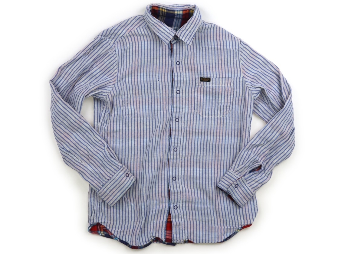 リバーシブルで着られます。接結ガーゼ素材です。ストライプ柄の後ろ裾あたりに、引っ掛け傷、毛羽立ちがあります。まだお使いいただけそうです。