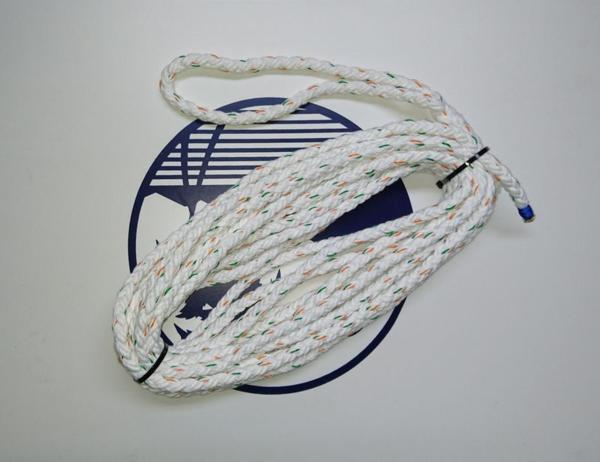スパンクロス係船ロープ 材質:スパンエステル ロープ径:10mm ロープ長:10m 片側アイ加工 |