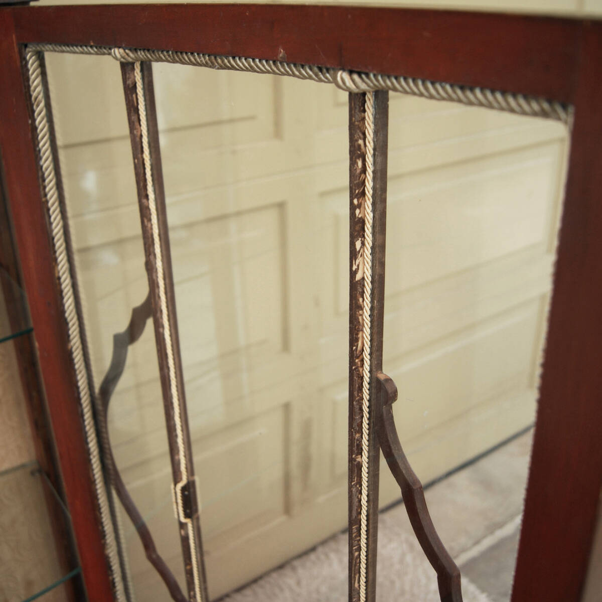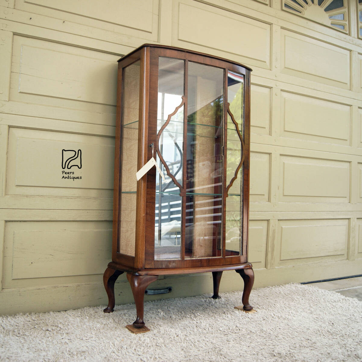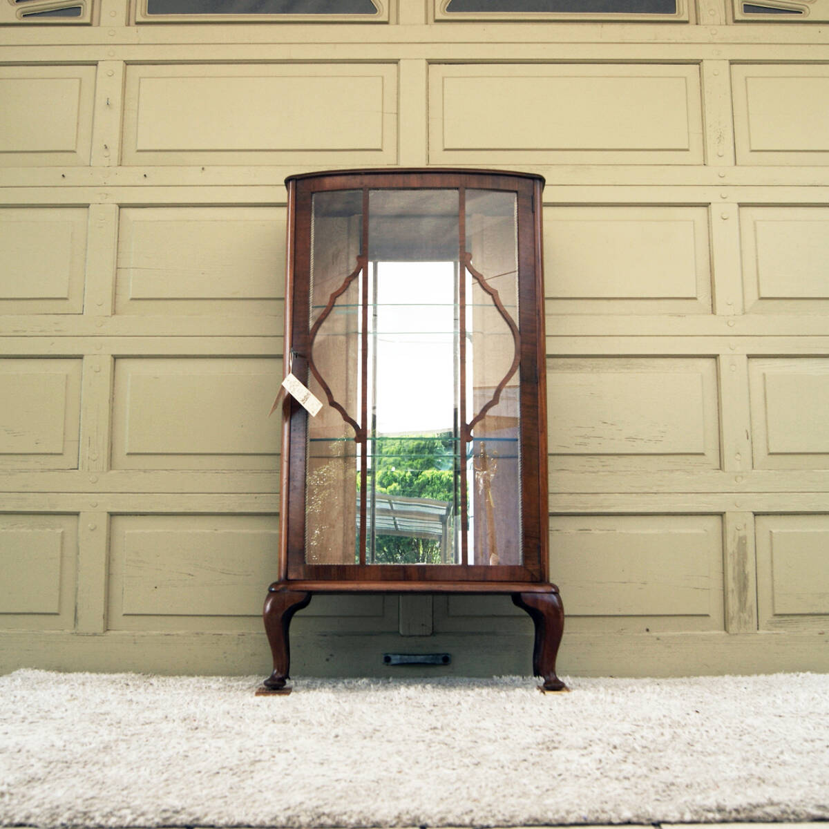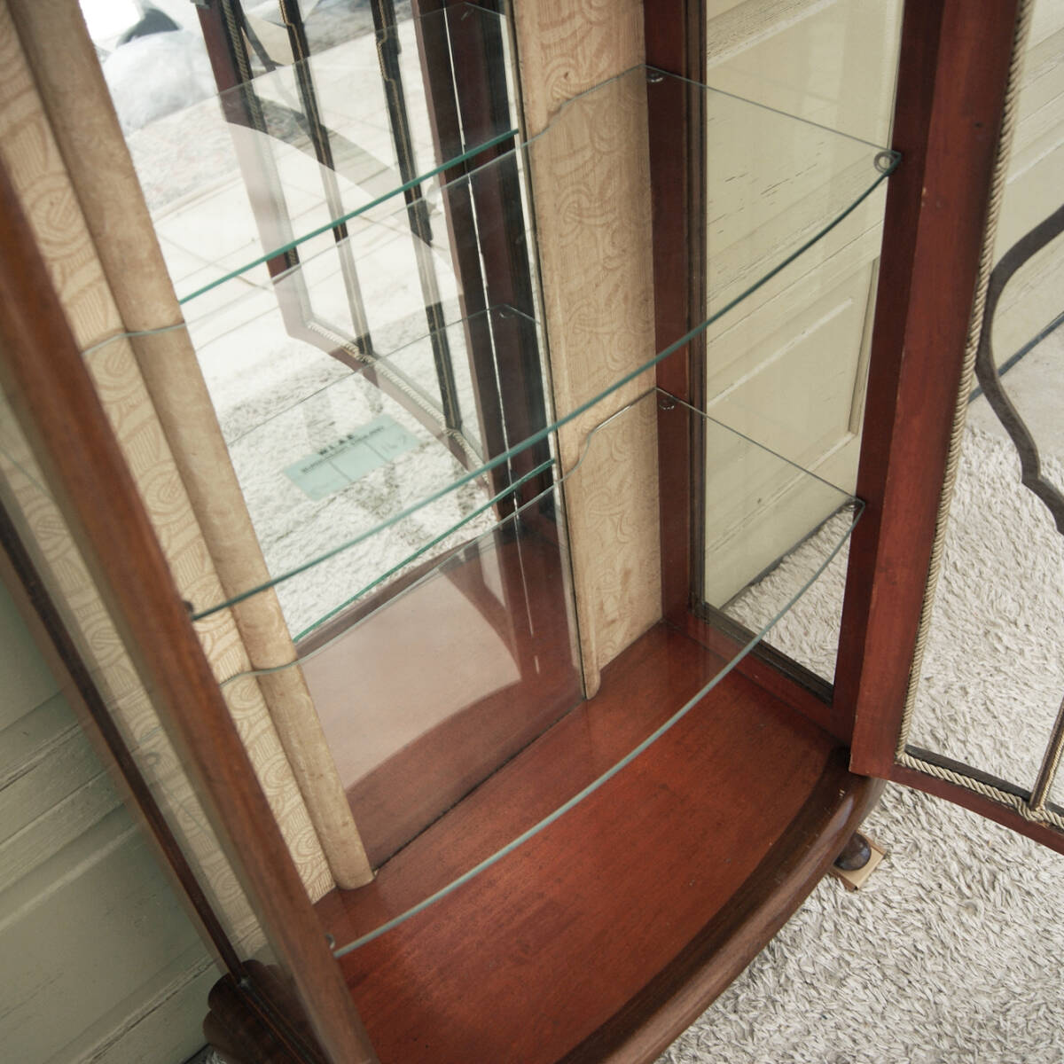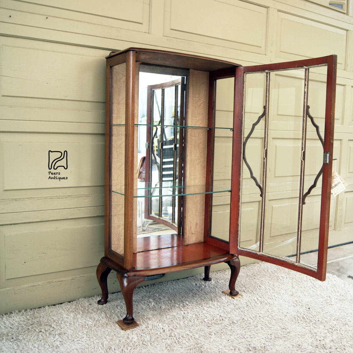 6302bw25【英国 アンティーク ミラーバック ガラス ディスプレイ キャビネット】猫脚 キュリオケース イギリス コレクション◎
