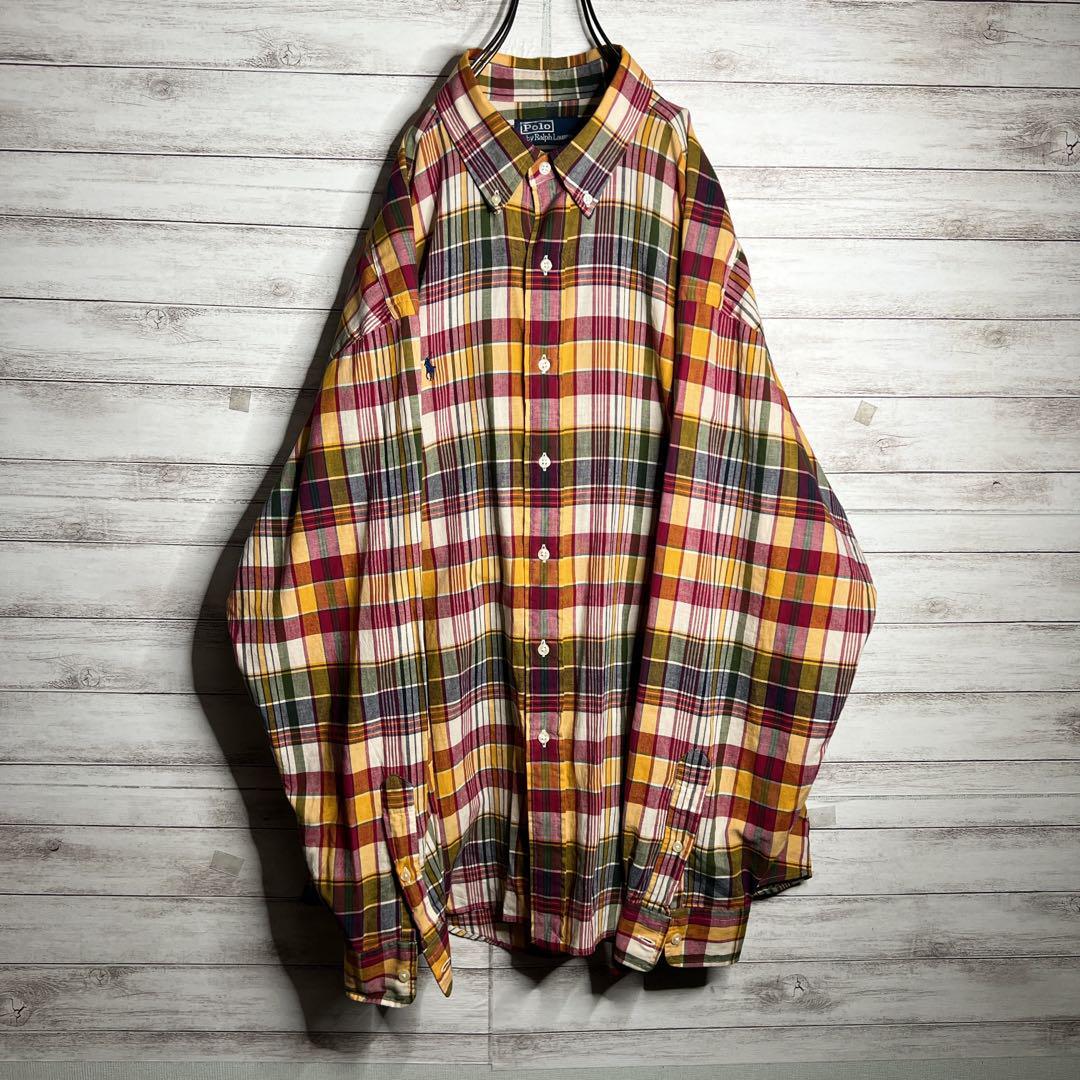 【入手困難!!】ラルフローレン beams別注 長袖シャツ マドラスチェック ビームス ポロ ゆるだぼ CLAYTON 重ね着 一点物 希少 パーカー スウェット クレイトン