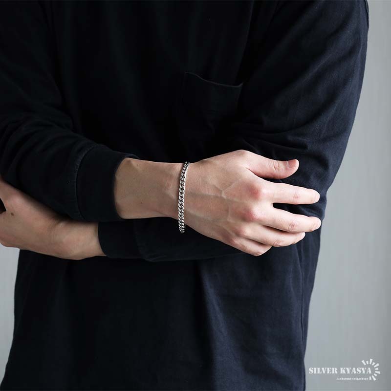 丸みのある喜平チェーンを採用したブレスレット。シルバー925の上品な輝きで高級感溢れる逸品です。シンプルなデザインなので様々なコーデに溶け込みます。