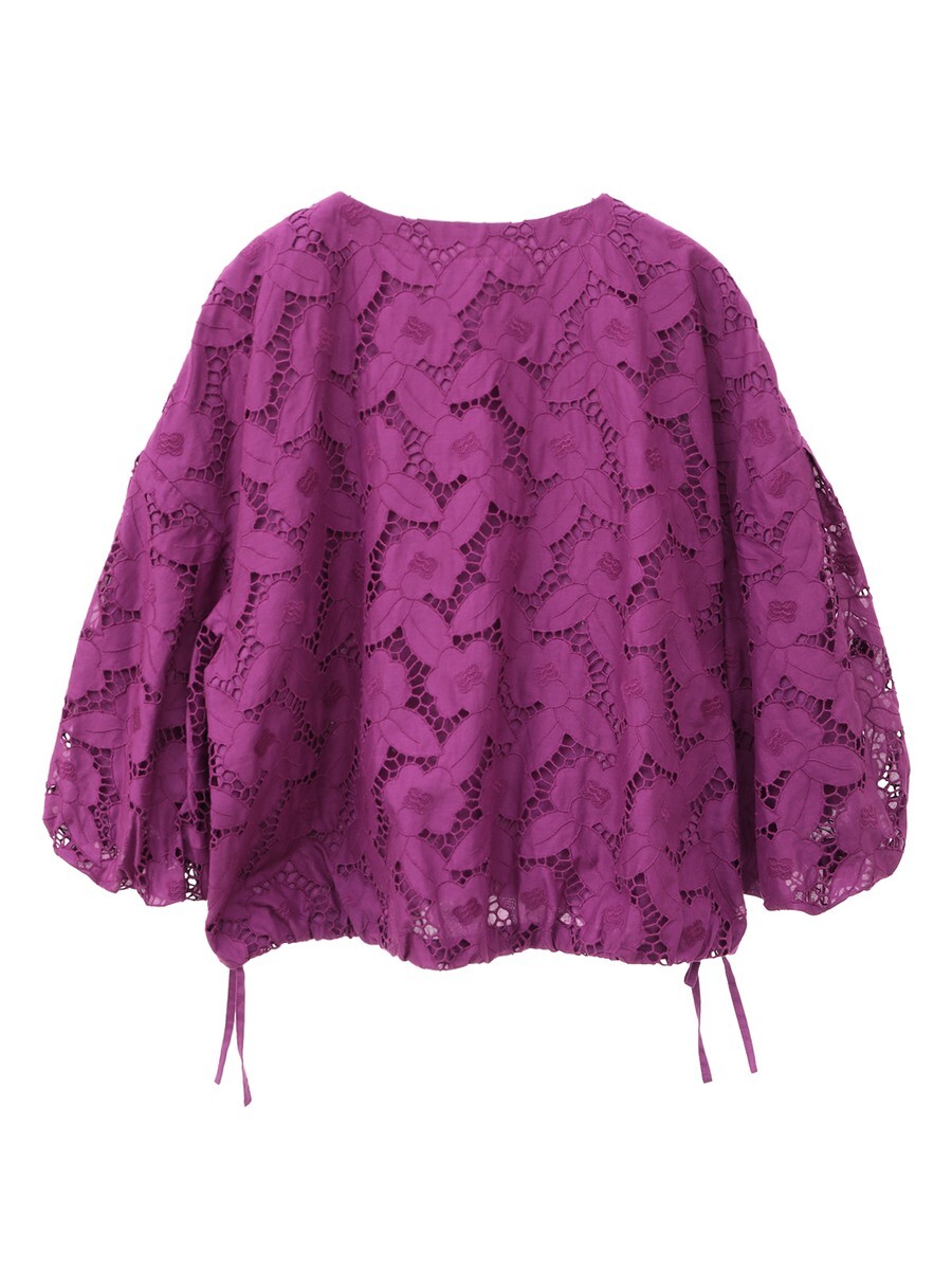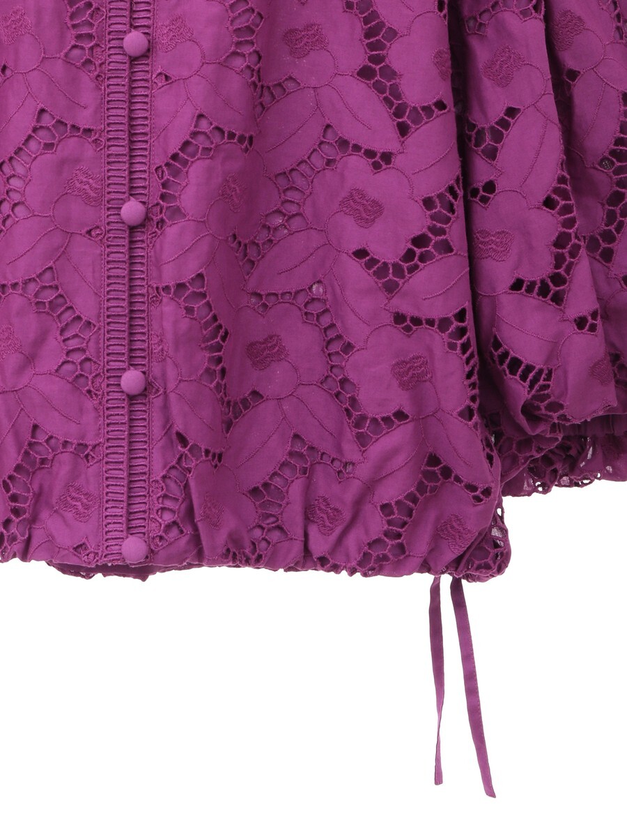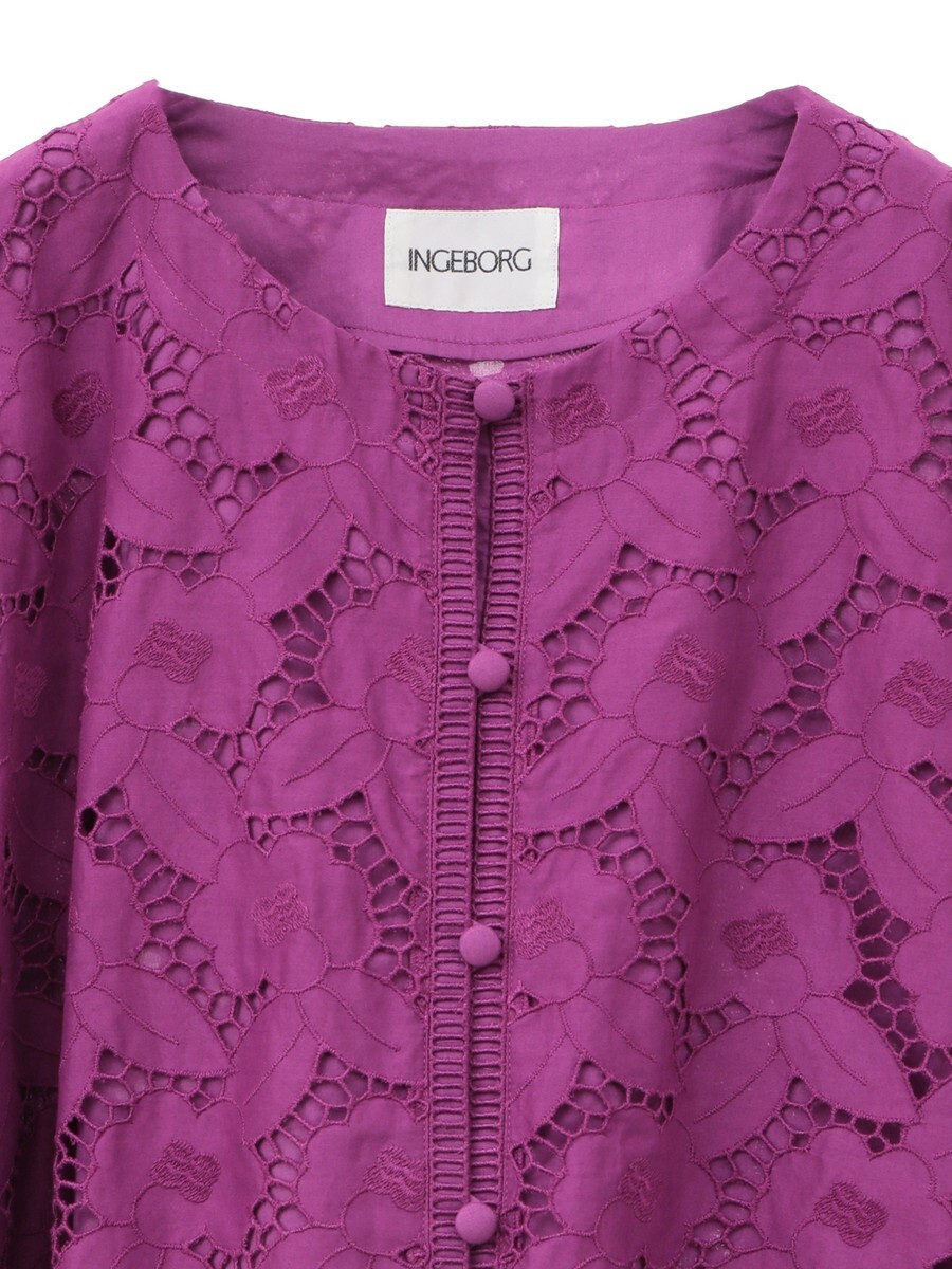 エンブロイダリーレースを贅沢に使用したノーカラージャケット。