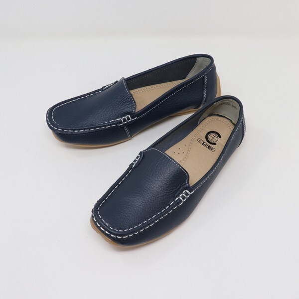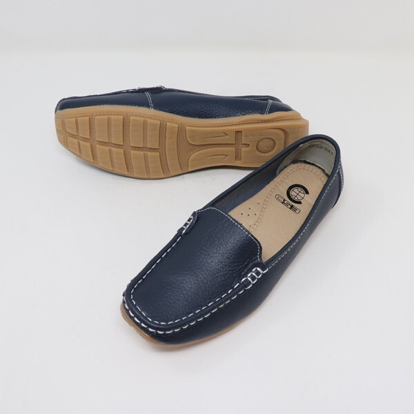 新品 24cm レディース 本革 ドライビングシューズ ローファー スリッポン ネイビー 541
