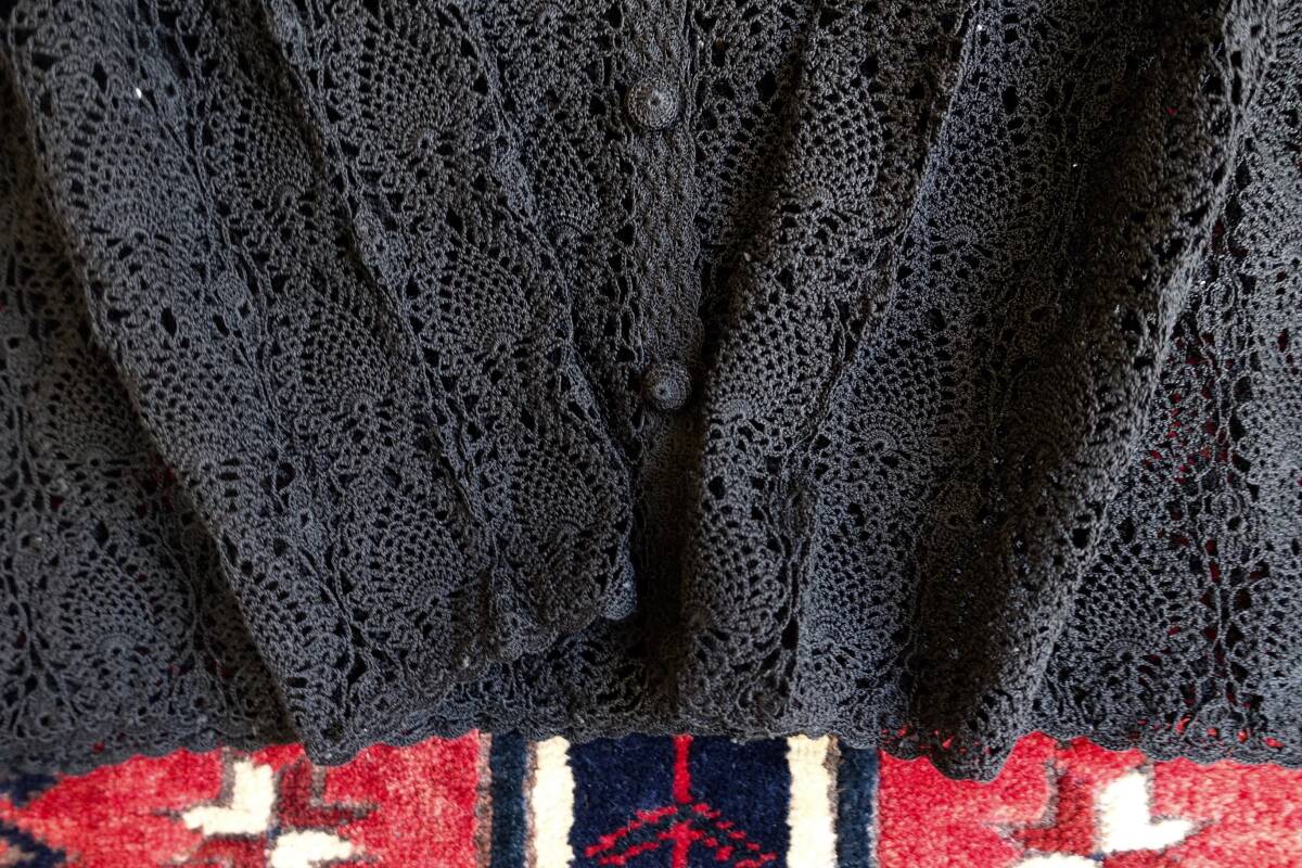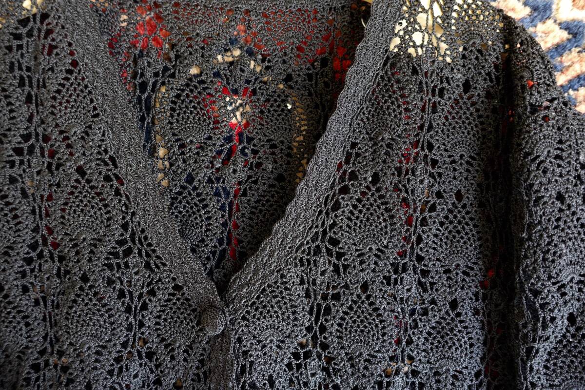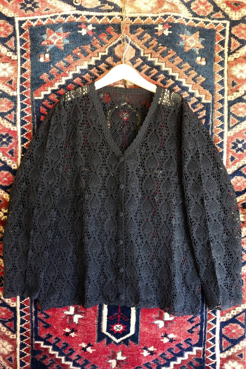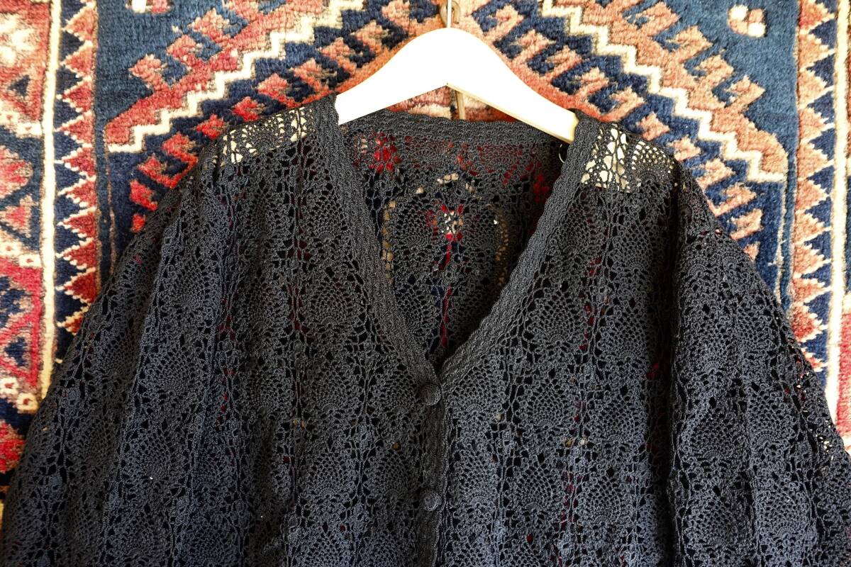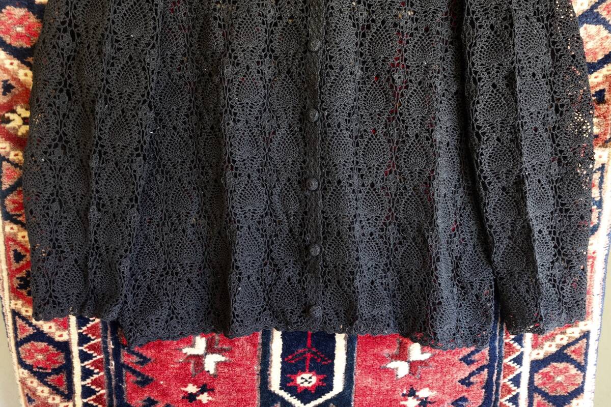 ○[50s60s70s vintage ヴィンテージ 黒 ブラック V コットン ハンドメイド レース カーディガン]USED古着 昭和レトロ・モダン・