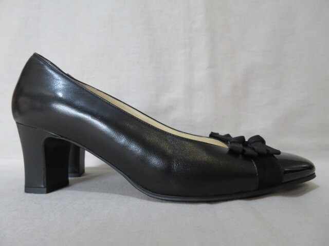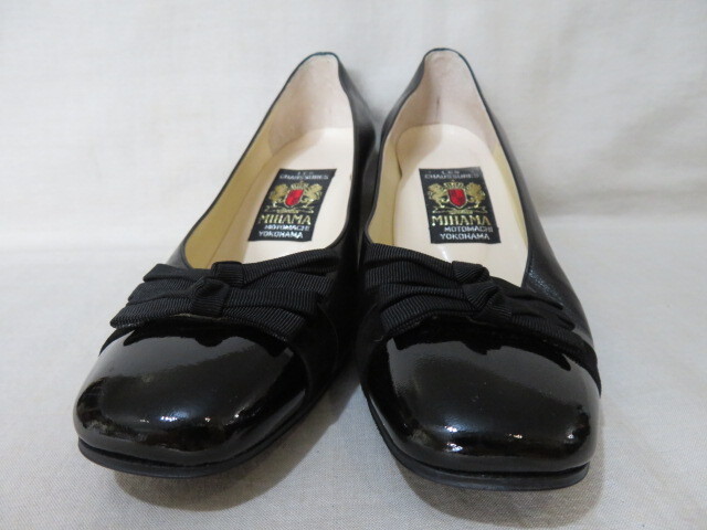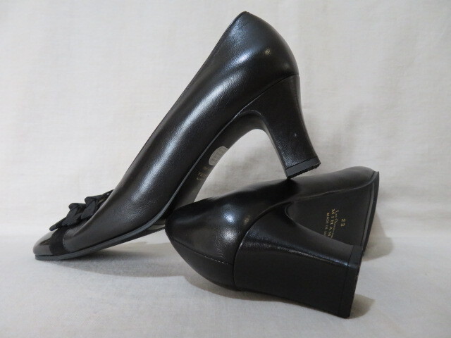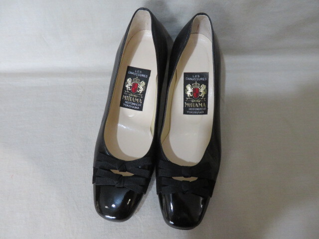 ☆MIHAMA ミハマ リボンパンプス 23cm 黒 レザー 本革☆