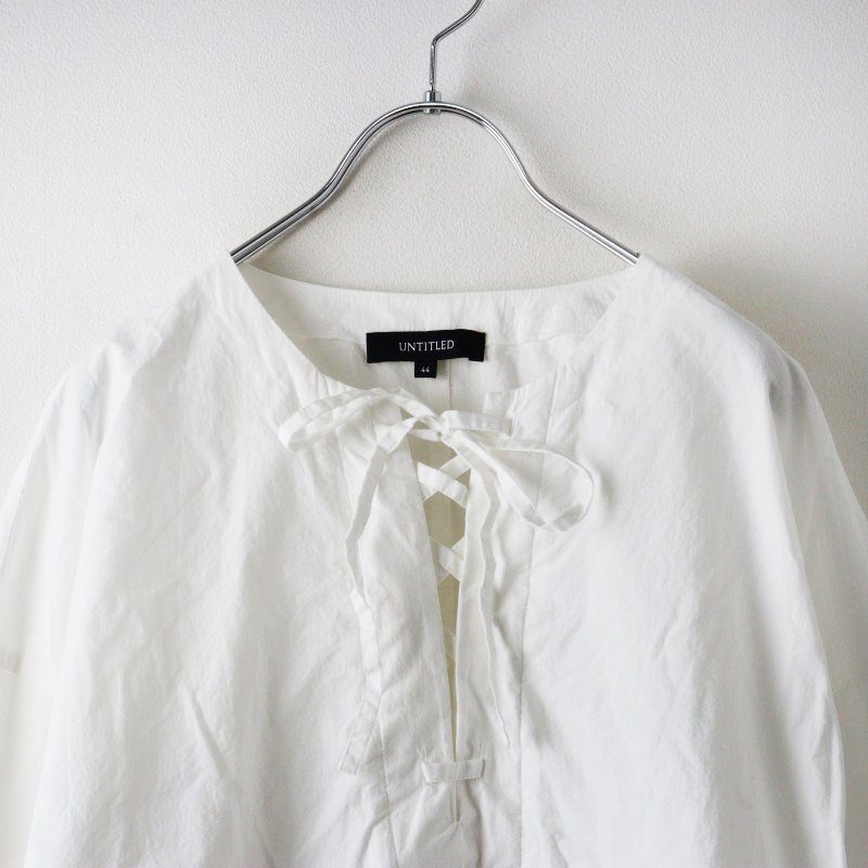 大きいサイズ ワールド アンタイトル UNTITLED コットン レースアッププルオーバーブラウス 裾フリル 44 ホワイト【2400014554021】