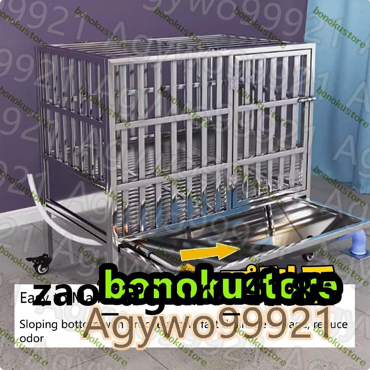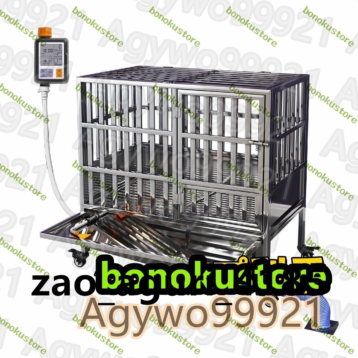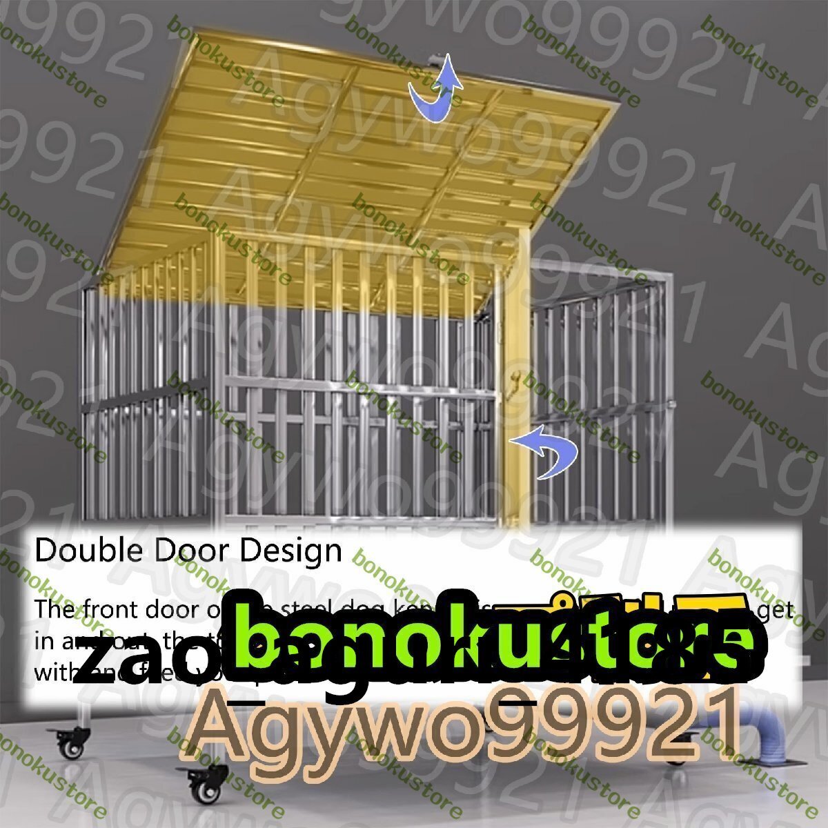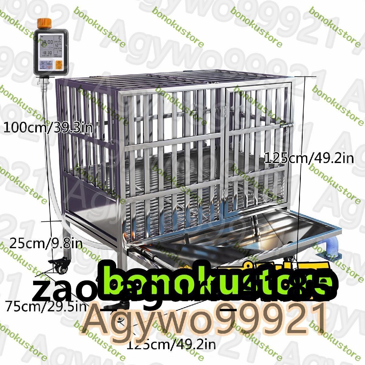 ステンレス製のペットケージ、犬用ケージ、車輪付きの屋内屋外犬小屋、自動で犬トイレを洗い流し付き 犬舎 脱走防止 小型犬/中型犬/大型犬(125cm/49.2in)