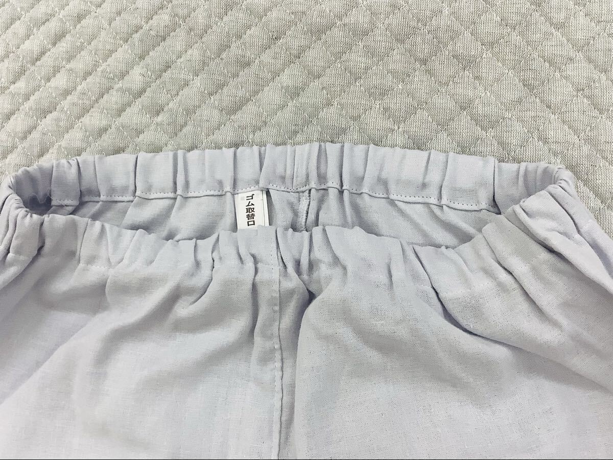 ウエストのゴムも、入れ替え口があるので、 ご希望の緩さ にすることができる、使う人にやさしい作りです。