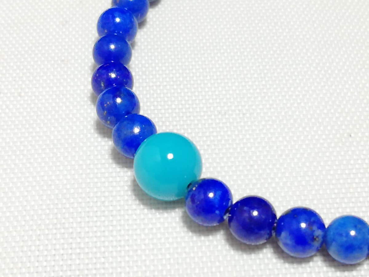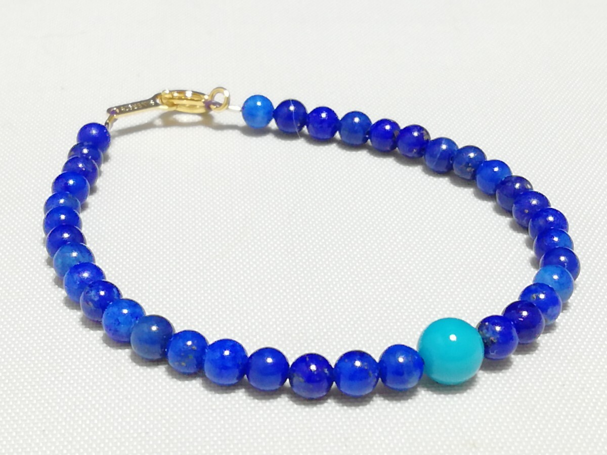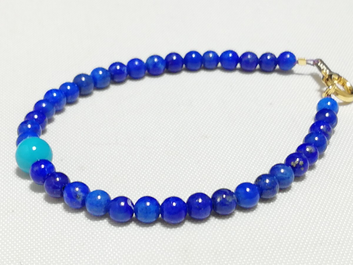 ハイグレード天然ラピスラズリ&アリゾナトルコ石ワンポイントブレスレット