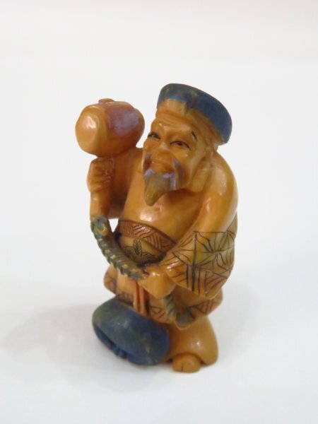 根付(1『大黒天◆七福神』勝斉 在銘◆勝斎 時代物 彫刻 古美術 骨董 古玩
