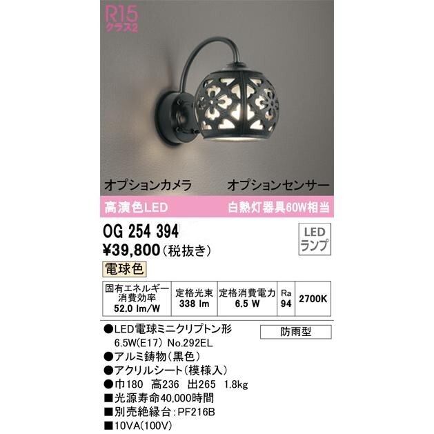 【未使用】オーデリックODELICエクステリアライト 共同照明 玄関ライト 外灯 間接照明 北欧風 アイアンポーチライト「OG254394#」*01F0725