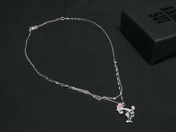 ■美品■ ANNASUI アナスイ ラインストーン フラワーモチーフ ネックレス ペンダント アクセサリー レディース シルバー系 DI1750
