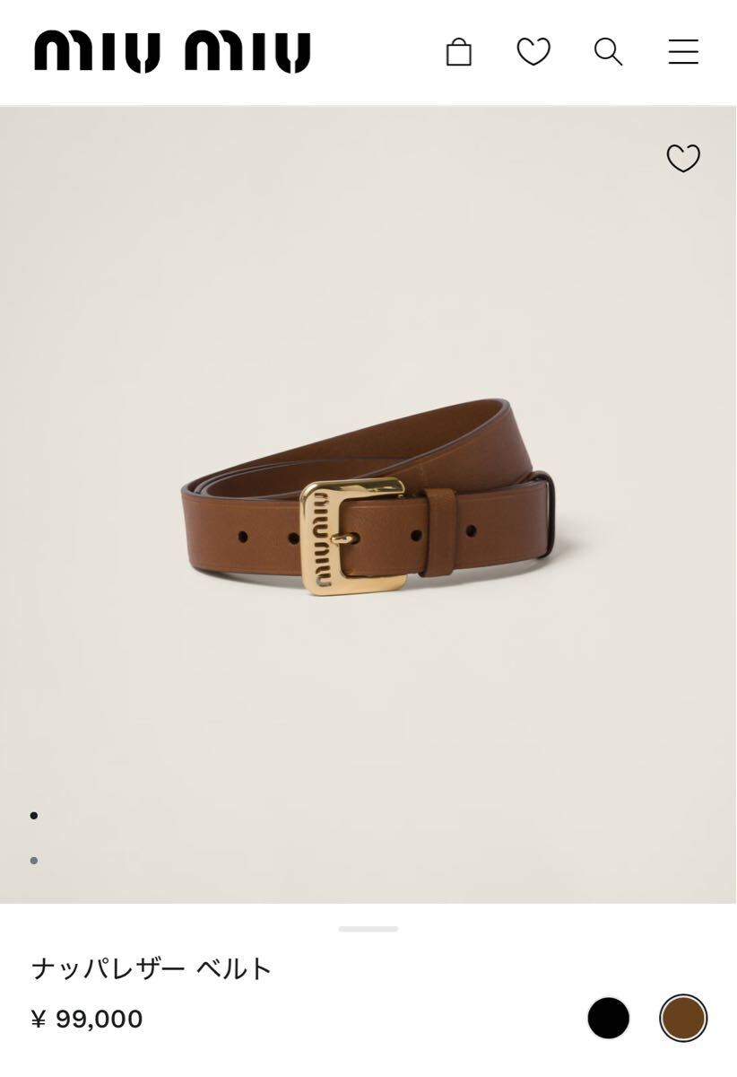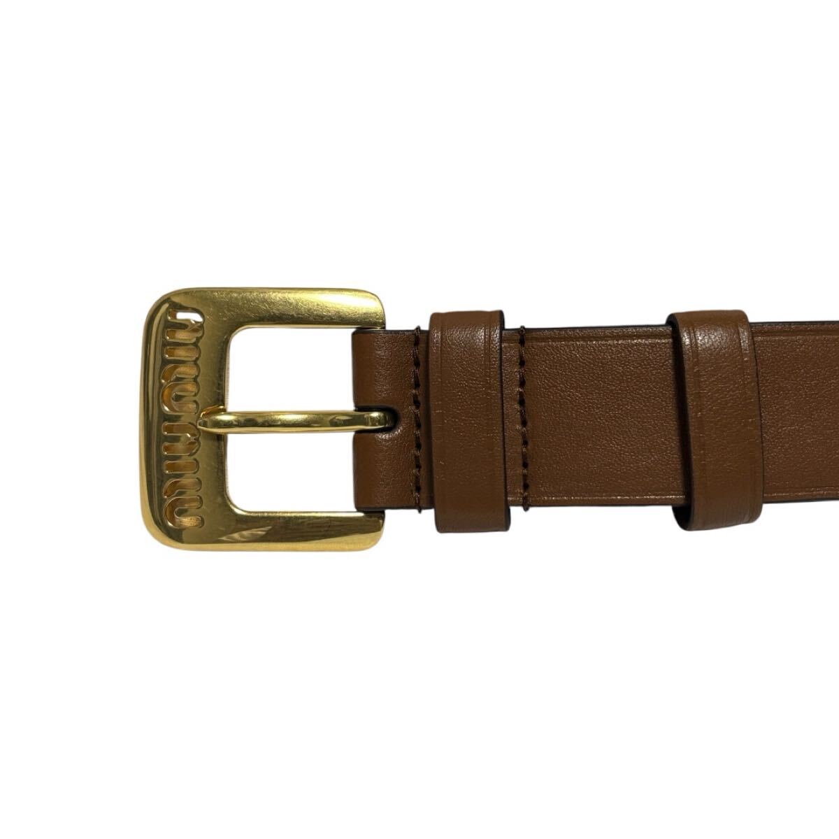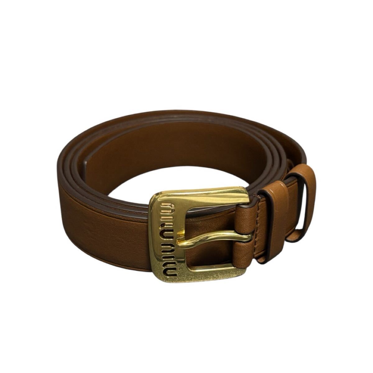 メタルバックルにMIU MIU ロゴがあしらわれた、エレガントでシンプルなデザインのナッパレザー(羊革)のベルト。