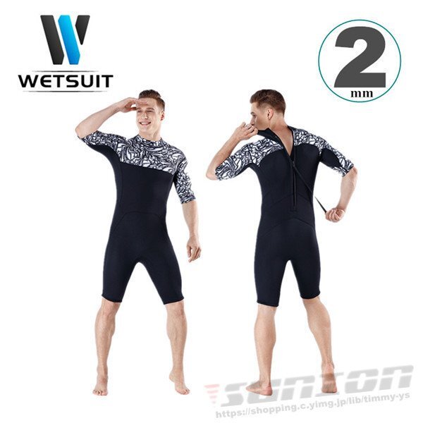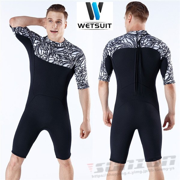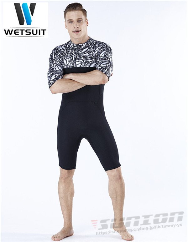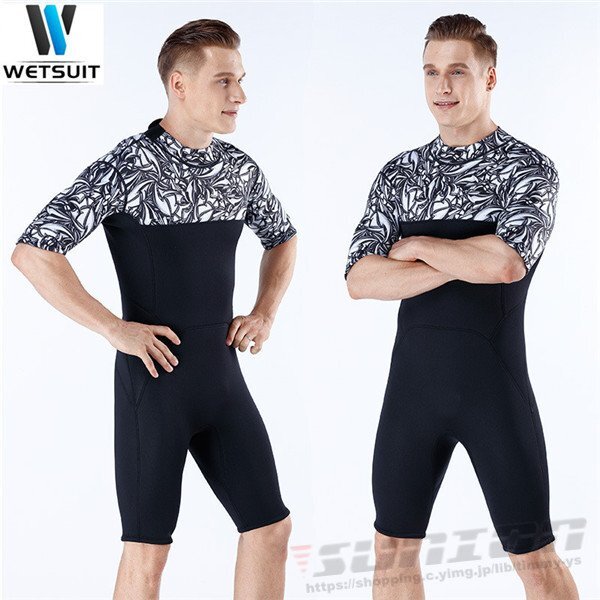 ウエットスーツ メンズ 迷彩 水着 スプリング ダイビングスーツ ショーティー 2mm 半袖 スイムウエア マリンスポーツ