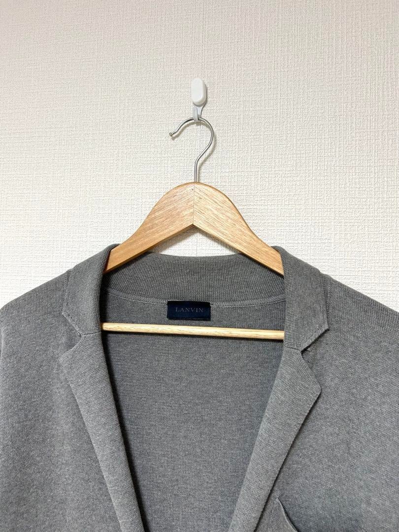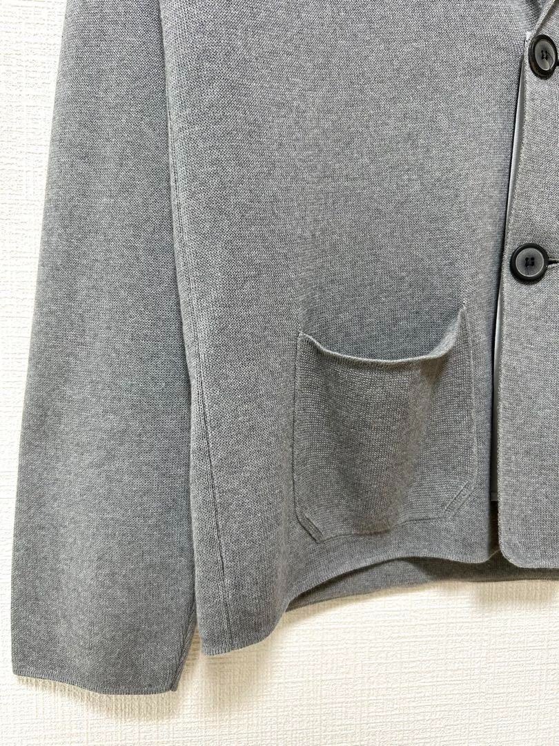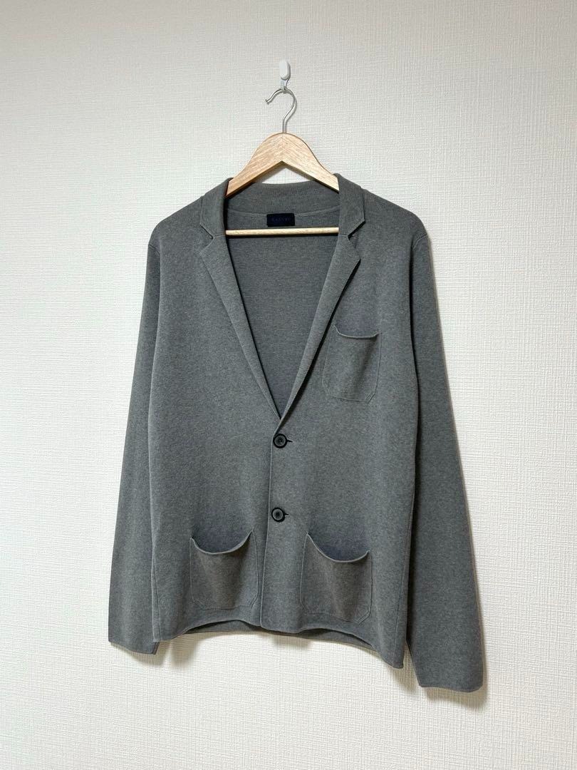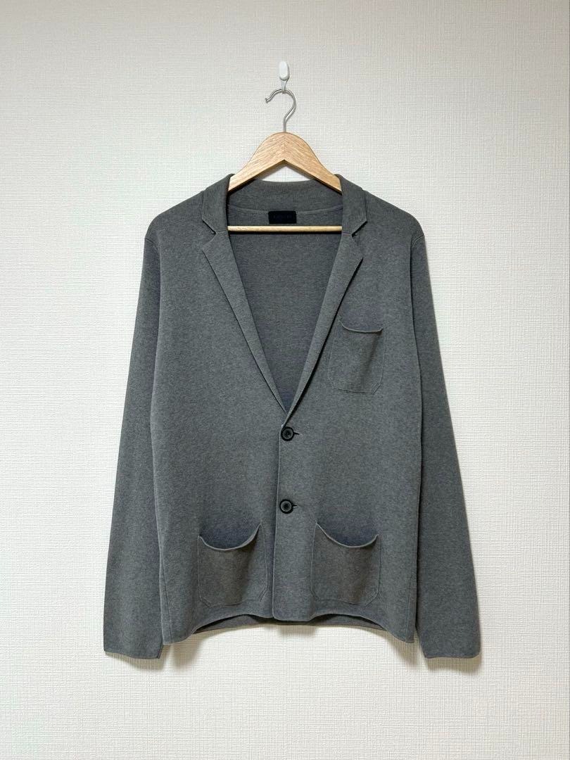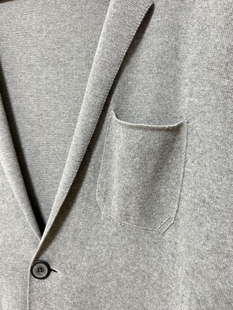 フロントは2つボタン、ノーベント、パッチポケットのつくりです。上質のコットンニット素材の一枚仕立てのアンコンジャケットです。