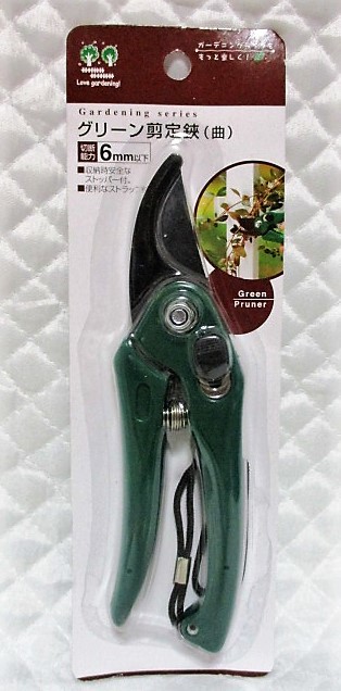 グリーン剪定鋏 ★ 剪定鋏 (曲) グリーン 新品 即決 ストッパー付 ストラップ付 ガーデニング 造園 枝 鋏 はさみ ハサミ ★