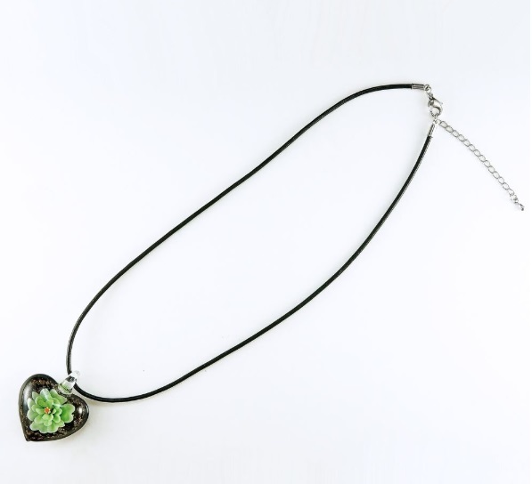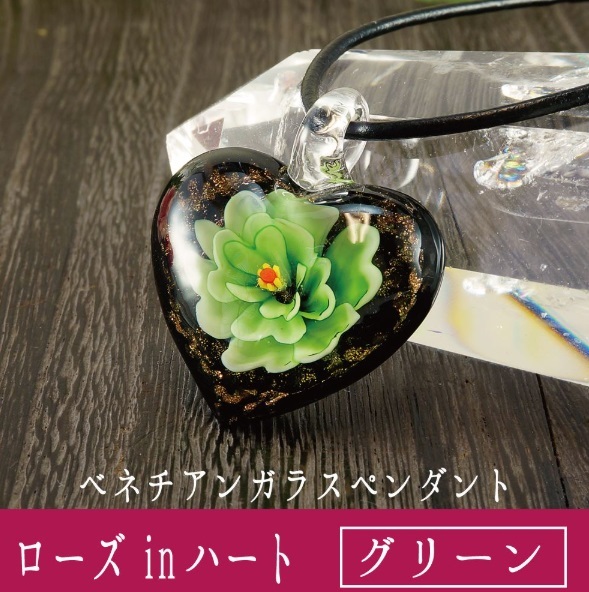 ■ベネチアン風ガラストップネックレス 新品&即決です♪ハート型!グリーンー ●とても綺麗です♪ベネチアンガラスペタントに本革チェーンを合わせて美しいネックレスに仕上げました。 |