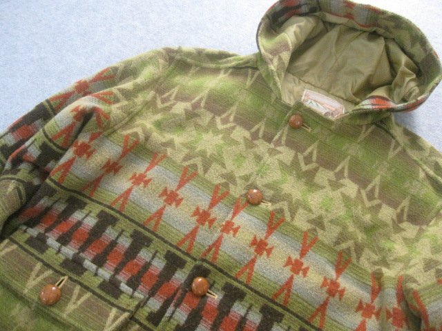 ビンテージWrangler ネイティブ柄ウールコート(レザーくるみボタン)です。非常に珍しい一品です。LADY WRANGLER とありますがボタンは右前になっておりますので男性でも着用できます。左ポケットのボタンがございません。ユーズドになります、古い品物ですが着用に差し支える大きなダメージはございません。あくまでユーズドです、古着なりの使用感ございます、神経質な方は控えてくださいませ。