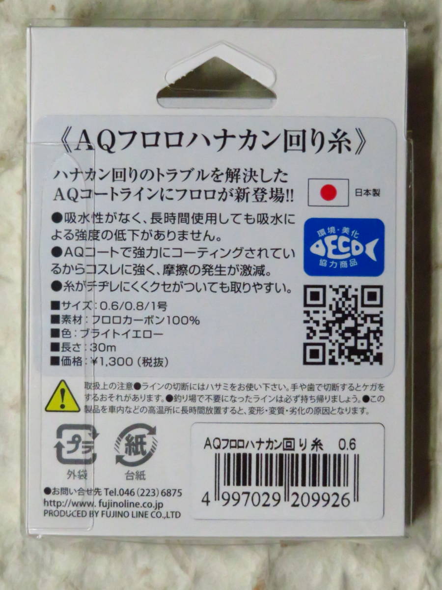 ●50%OFF● 日本製 フジノ AQフロロハナカン回り糸 0.6号 定価1,300円+税 フロロカーボン Fujino フジノライン 新品