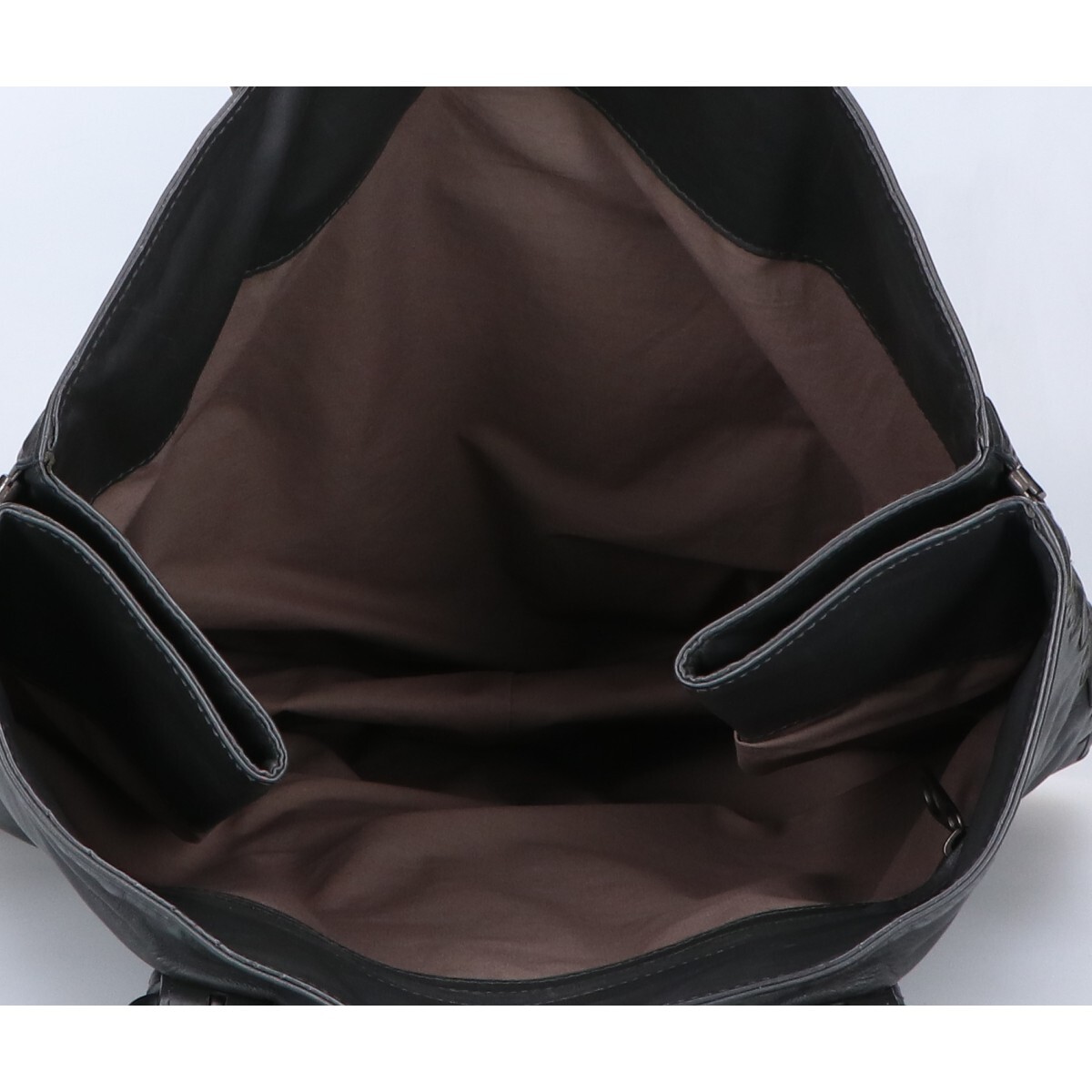 外側詳細:レザー表面に擦れ傷、汚れがございます。ハンドルに擦れ等の使用感がございます。