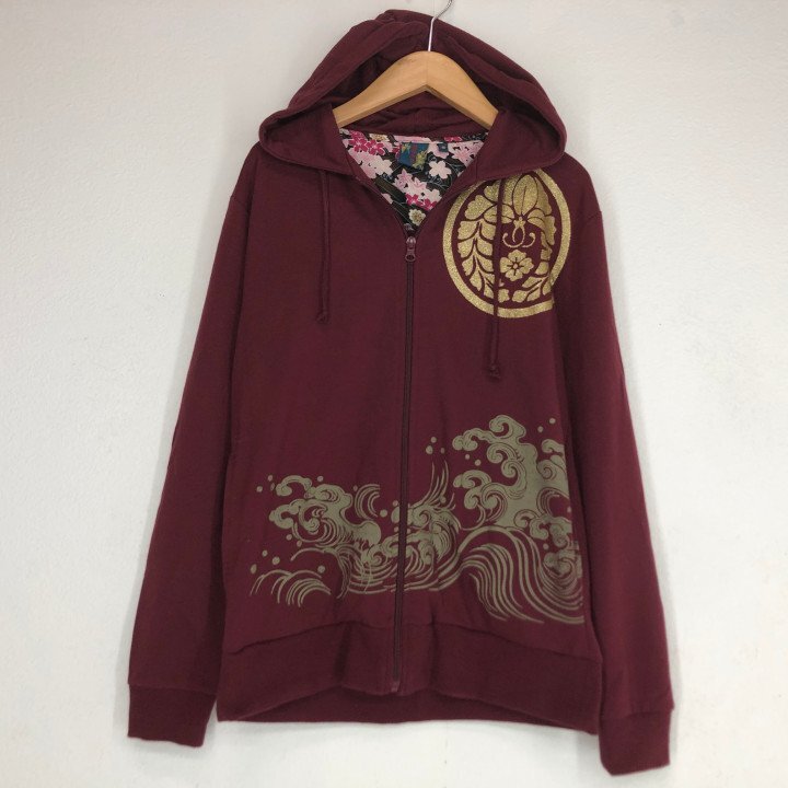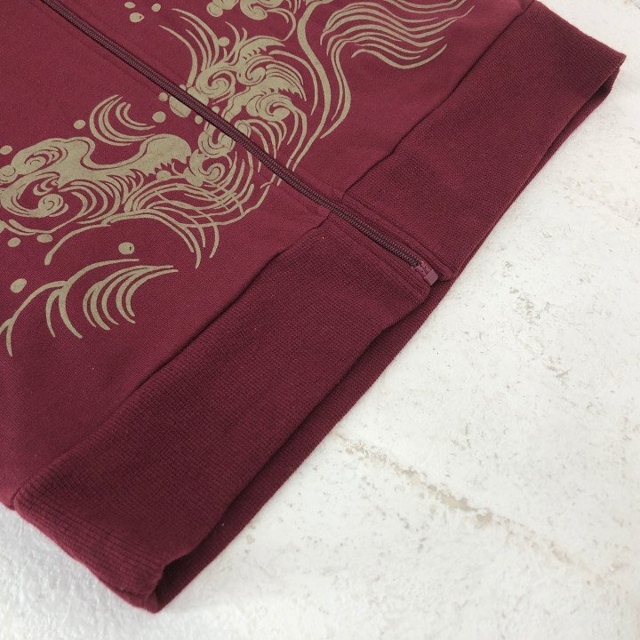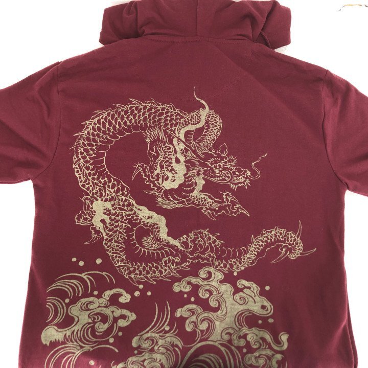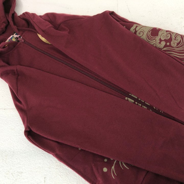 阿羅守鼓 アラスコ 長袖 ドラゴン 龍 和柄プリント ジップアップ フーディーパーカー SIZE: M ワインレッド LH632025080902 | |