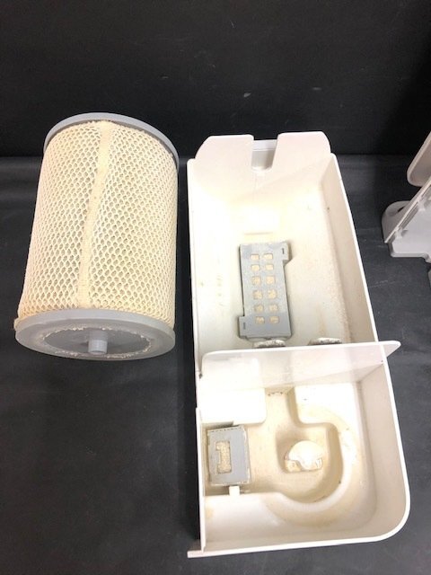 | 商品説明 パナソニック 加湿空気清浄機 F-VXF35 適用可能畳数16畳です。 こちらは「ナノイー」で除菌・脱臭可能なコンパクトデザインの商品です。 詳細 ●サイズ:本体寸法/幅×奥行×高さ 約36×19×54cm ●型 式:F-VXF35 ●付属品:なし ●動 作:通電・動作確認済 ●ランク:Dランク ●コンディション:タンク内カルキ汚れあり。取説欠品。 ※フィルターの交換が必要です。 |
