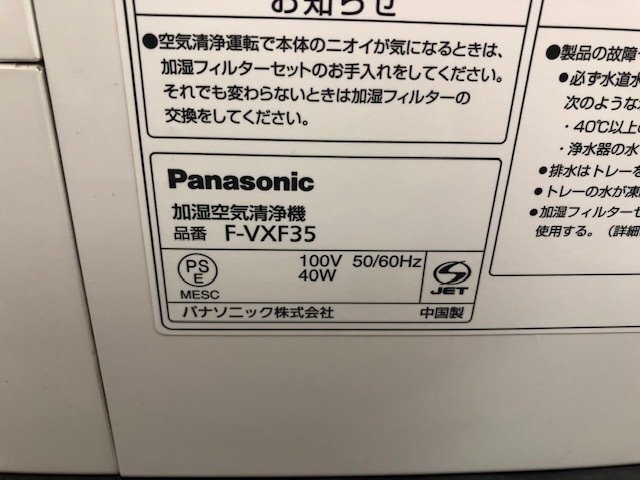 | パナソニック 加湿空気清浄機 F-VXF35 適用可能畳数16畳 |