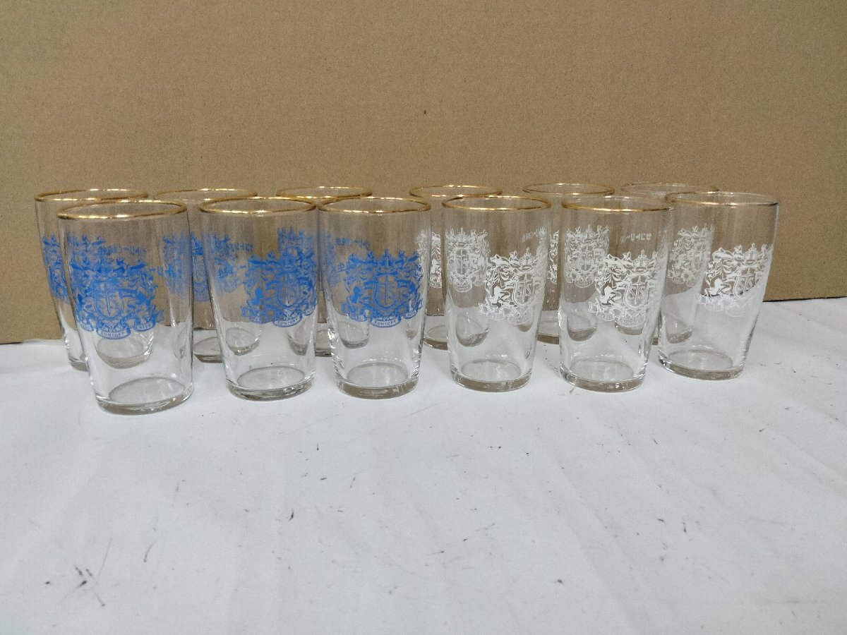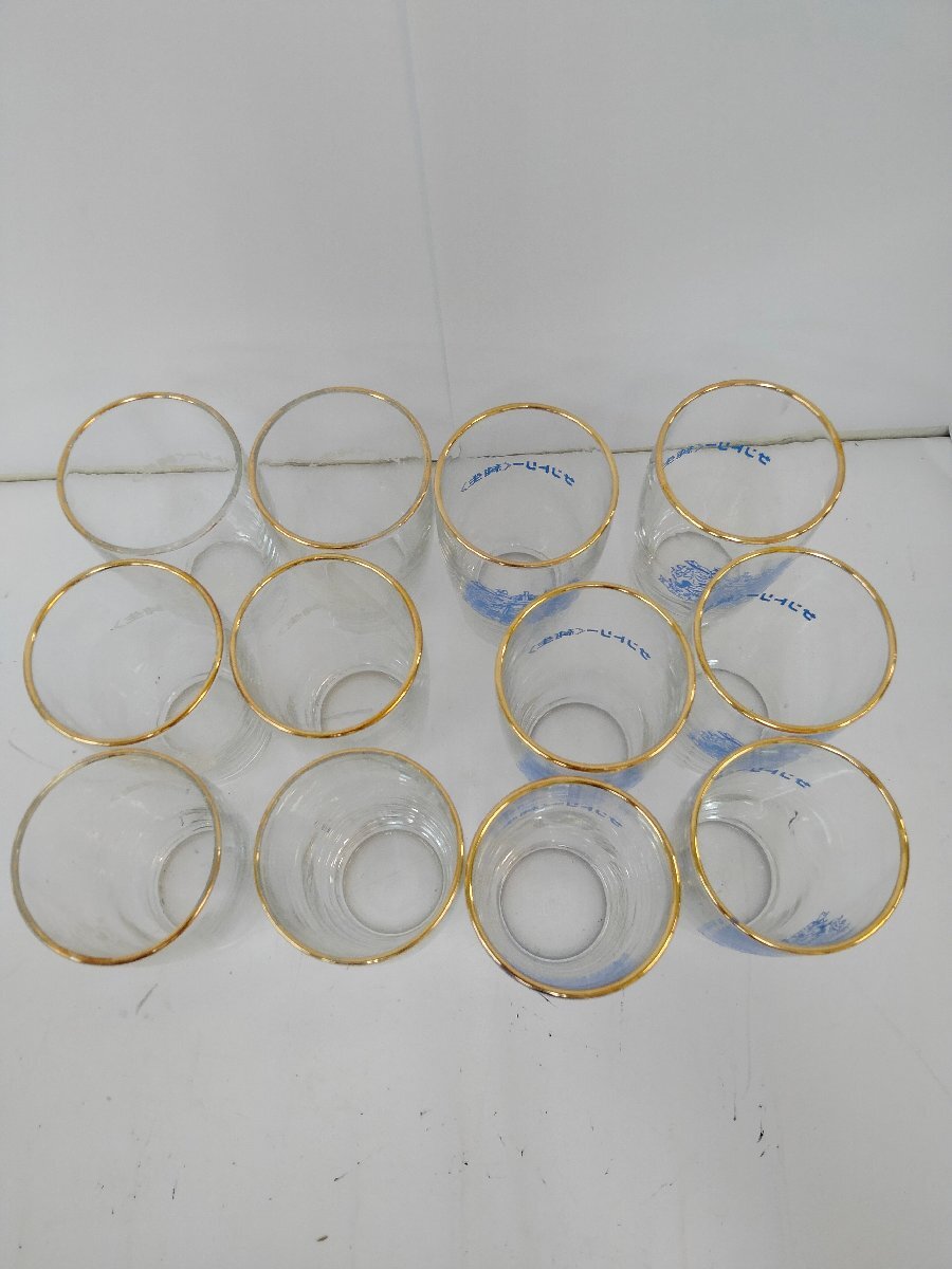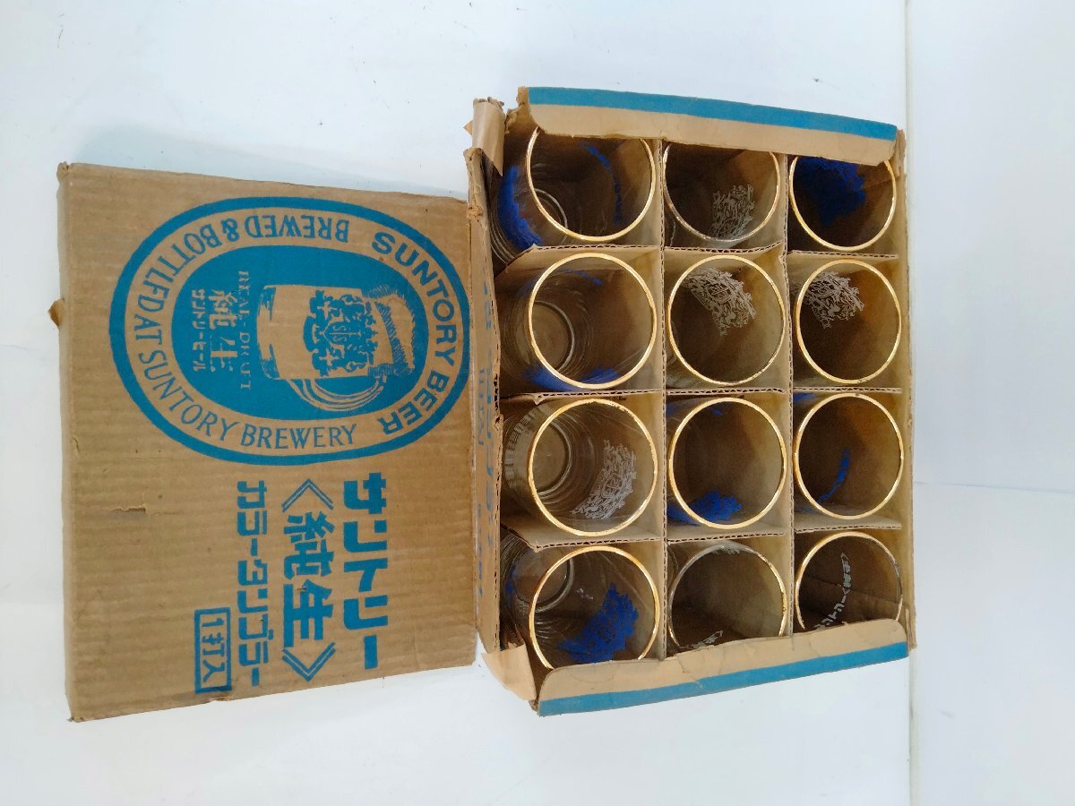 サントリー 純生 カラータンブラー 1ダース 12個セット 白 青 箱付 昭和レトロ 佐々木硝子 コップ 瓶ビール用