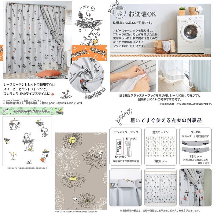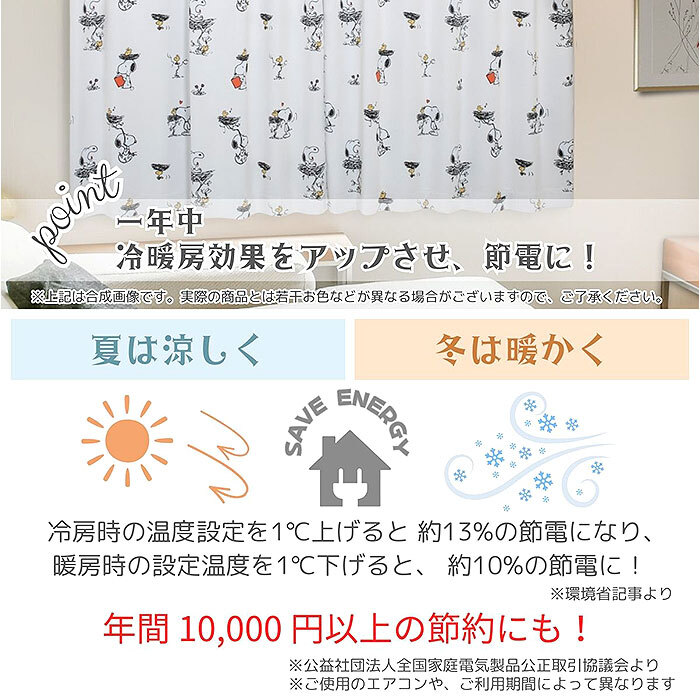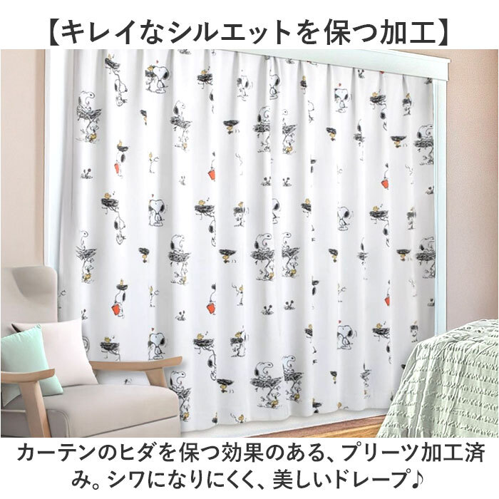 商品説明 | ・・【快適に過ごせて、可愛い空間に】 ・程よく光を取り入れ、強い光を遮る!キャラクターデザインの「カーテン 2枚組」。 ・【プライバシーを守る2級遮光】 ・遮光率99.90%以上の2級遮光。日差しや街灯等も気になりにくく、外へ光を漏らしにくい! ・(※1)2級遮光:遮光率99.8~99.99%未満。本商品の遮光率はカラーにより、99.90%/99.93%と差異がございます。遮光率遮光用の糸を生地に使用しているため、少し色が暗く見える場合がございます。 ・【夏は涼しく、冬は暖かく♪】 ・遮光・遮熱効果のあるカーテンを取り付けることで、冷暖房効果をアップ!節電対策にも。 ・【キレイなシルエットを保つ加工】 ・カーテンのヒダを保つ効果のある、プリーツ加工済み。シワになりにくく、美しいドレープ♪ ・【すぐに使えるアジャスターフック】 ・カーテン用のアジャスターフックが付属。お部屋の窓のサイズに合わせて、丈感を調節。 ・【カーテンをまとめるタッセル付き】 ・カーテンと同じデザインのタッセル。カーテンを開ける時は、スマートにひとまとめ。 ・【丸洗いできてお手入れラクラク】 ・汚れが気になったらフックを外してネットに入れ、洗濯機洗い可能。いつも清潔をキープ◎ ・(※2)脱水後はフックを取り付けてレールに沿って乾かすと、型崩れしにくくなります。 ・【気分の上がるキャラクターデザイン】 ・大人にも子供にも人気のキャラクター柄をプリント。お部屋の雰囲気をチェンジ! |