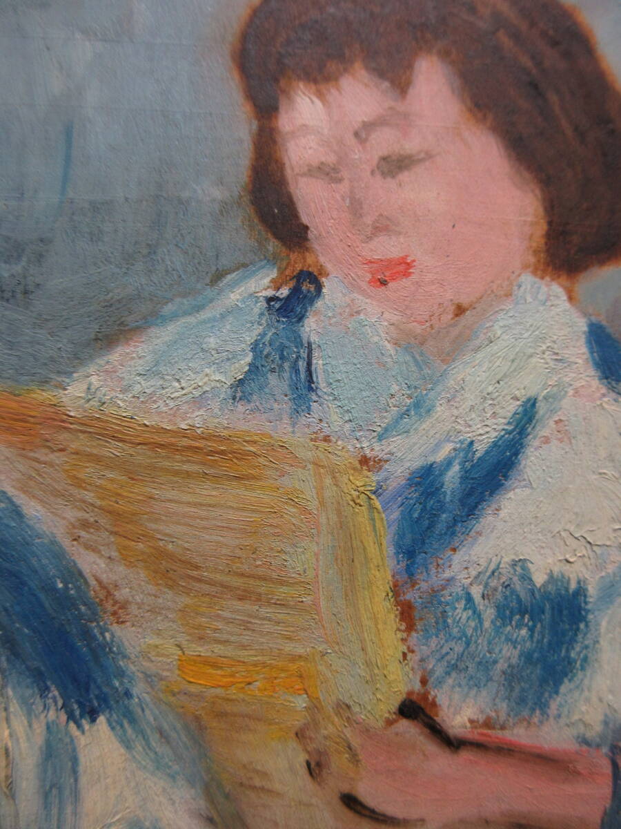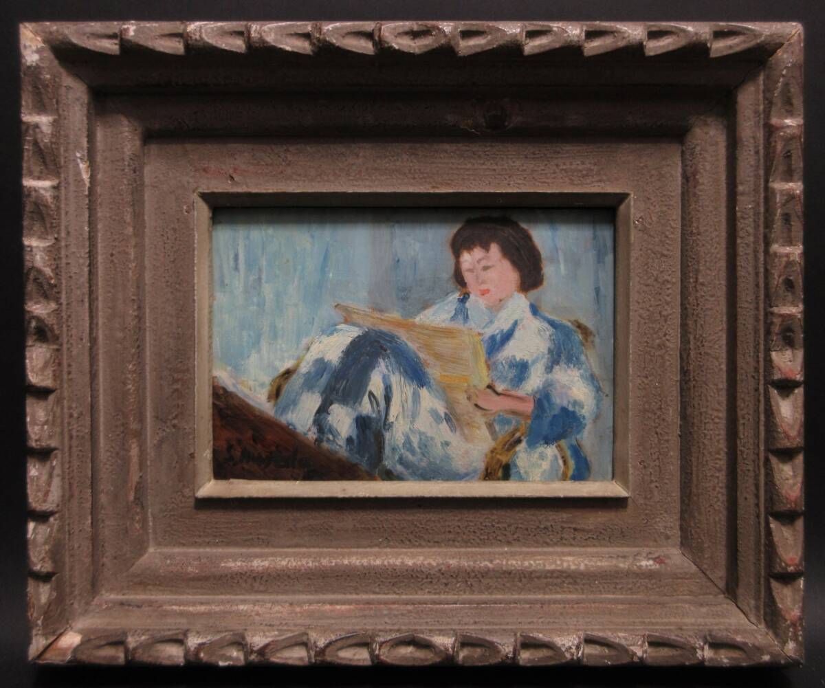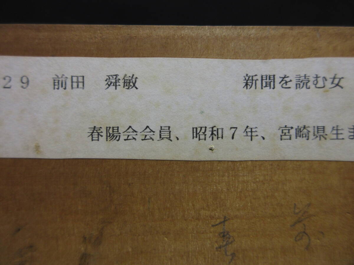 前田舜敏 真作保証 SM号『新聞を読む女』油彩板 春陽会会員