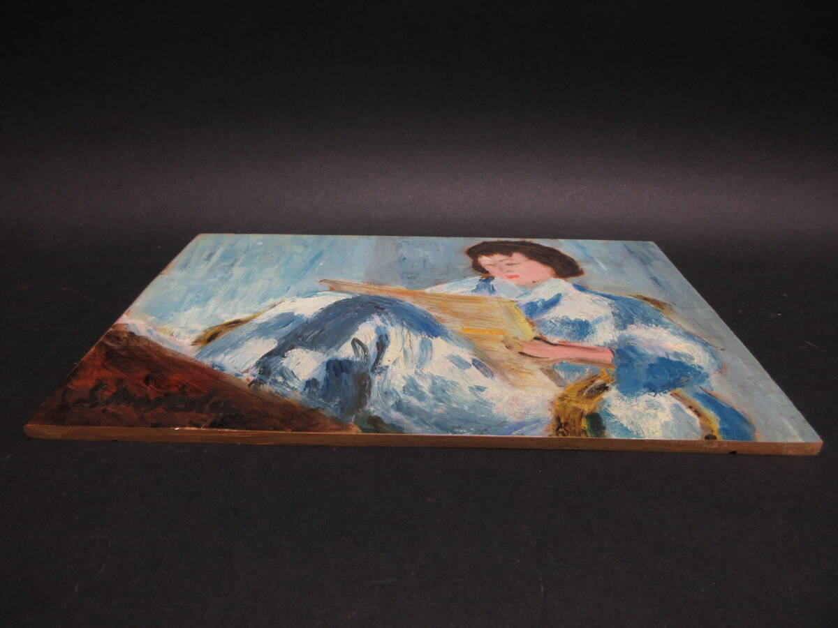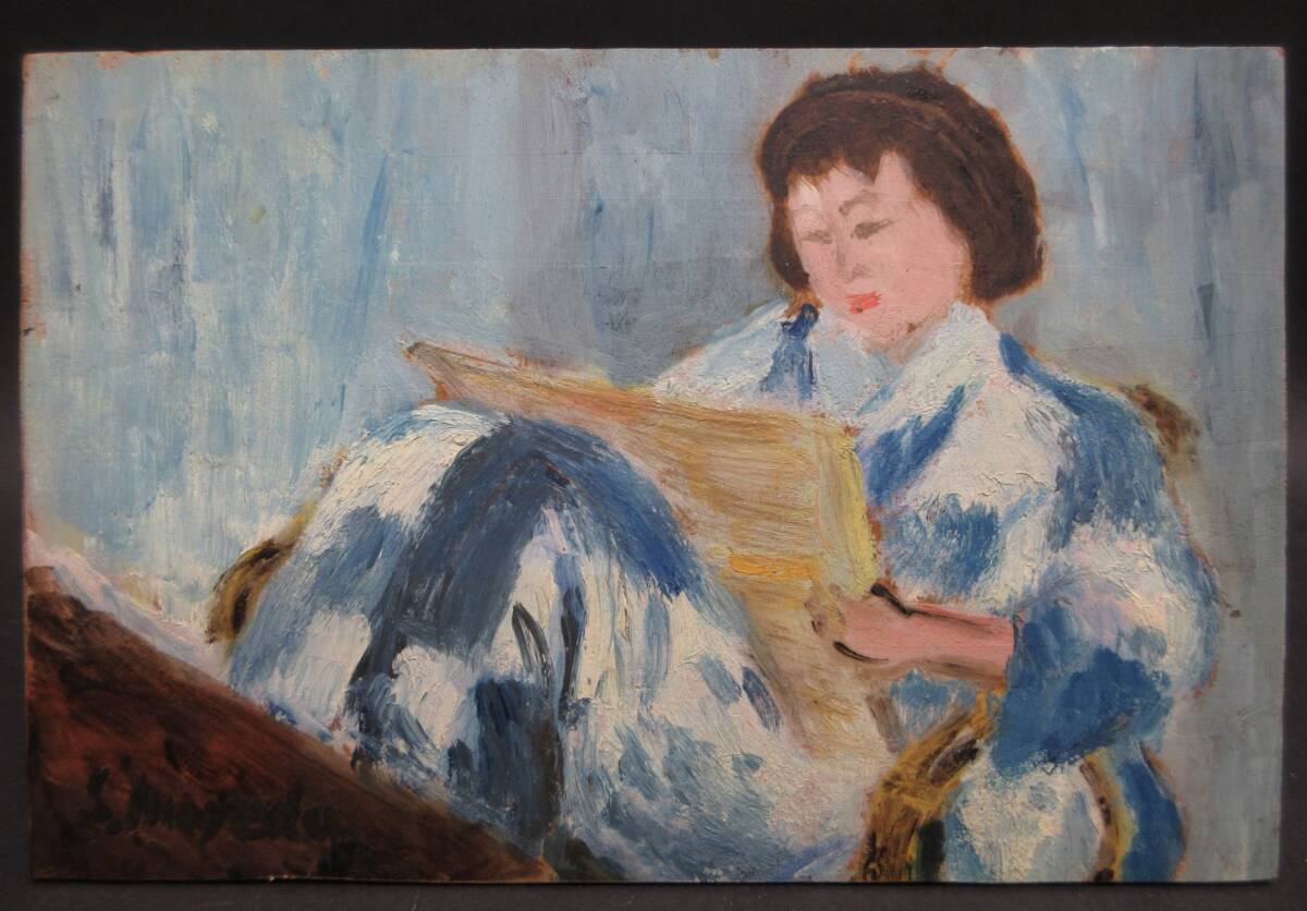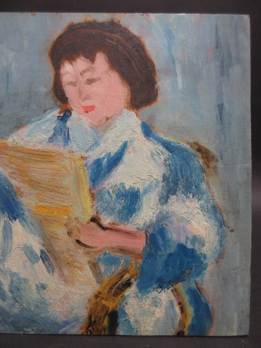 前田舜敏 真作保証 SM号『新聞を読む女』油彩板 春陽会会員