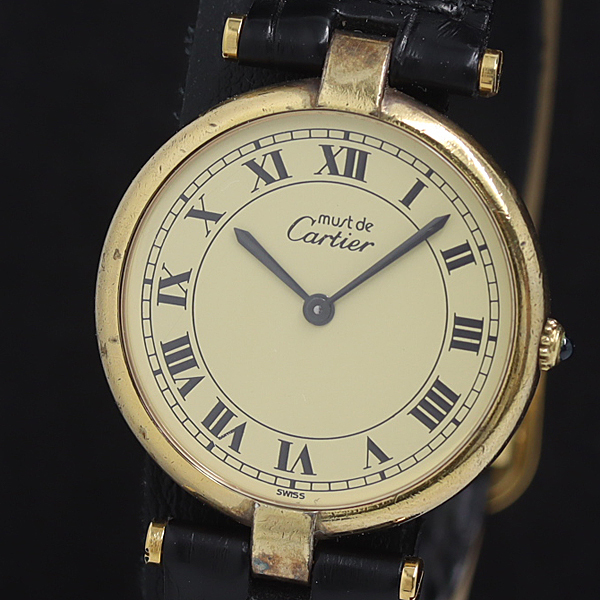 1円 稼働 カルティエ マストヴァンドーム SV925 QZ アイボリー文字盤 メンズ腕時計 0050600 8BKT SMZ
