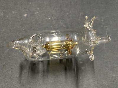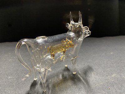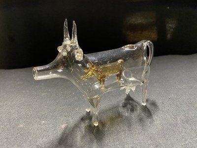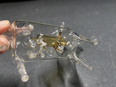 c□** ガラス細工 牛の中のうし ウシ 約9.5㎝×12cm 民芸品 置物 キズあり / B19上