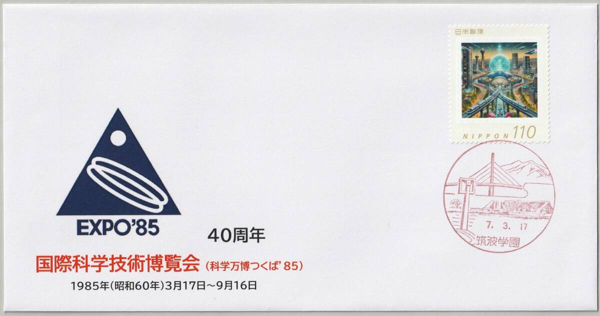 万博を記録するカバー1985年開催『国際科学技術博覧会』つくば万博・科学万博40周年/茨城・筑波学園郵便局・風景印押◆令和7年3月17日