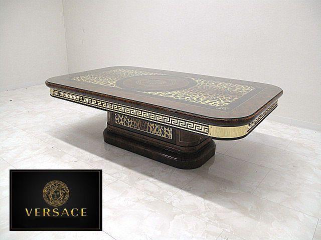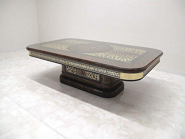 イタリアが誇るラグジュアリーハウスの気品を体現する、VERSACE HOMEスタイルのセンターテーブルです。深く艶めくウッドと輝度の高いゴールド装飾が織りなす造形は、見る者の視線を奪う圧倒的な存在感を放ちます。