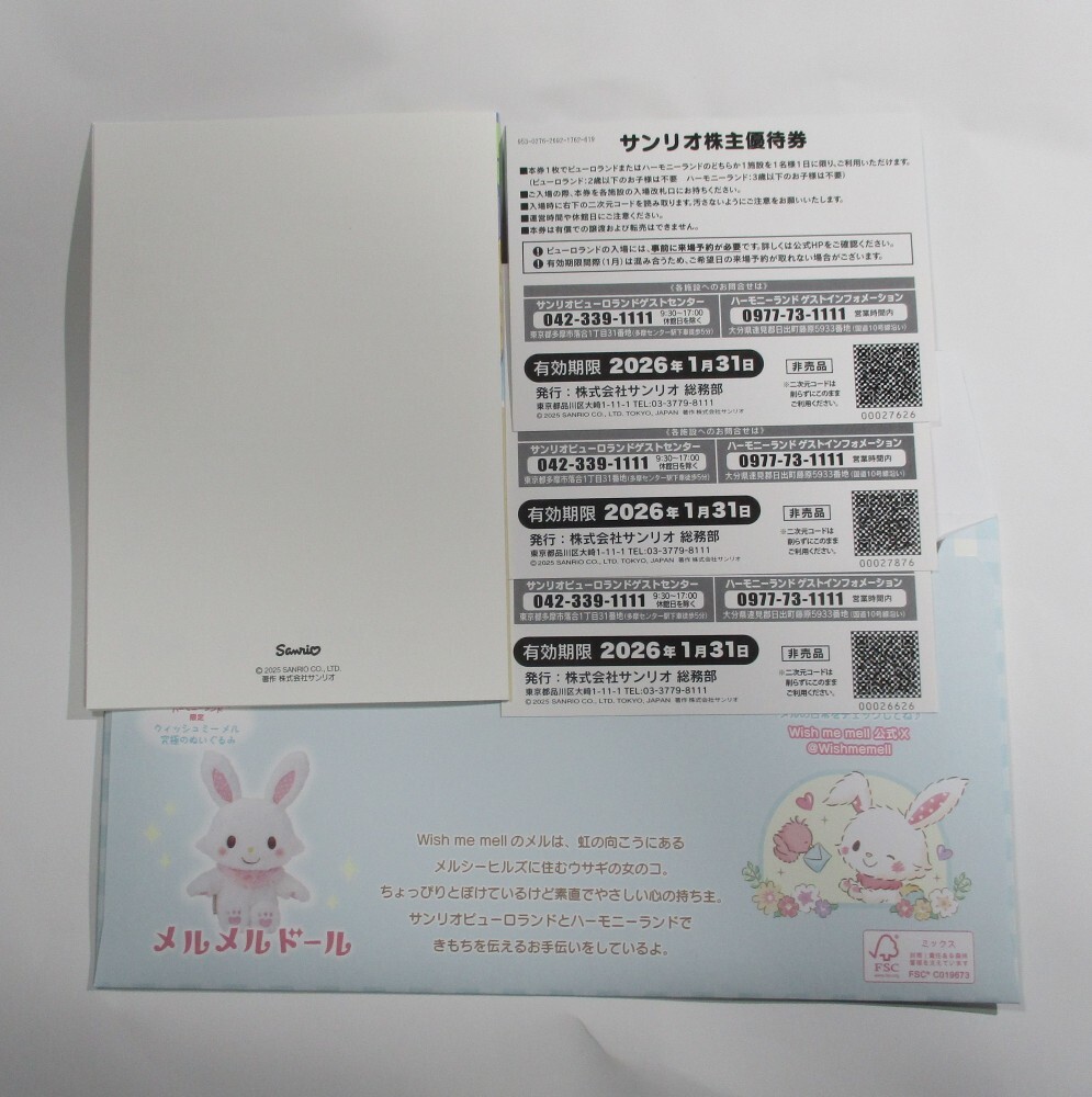 サンリオピューロランドの株主優待券3枚(有効期限:2026年1月31日)
