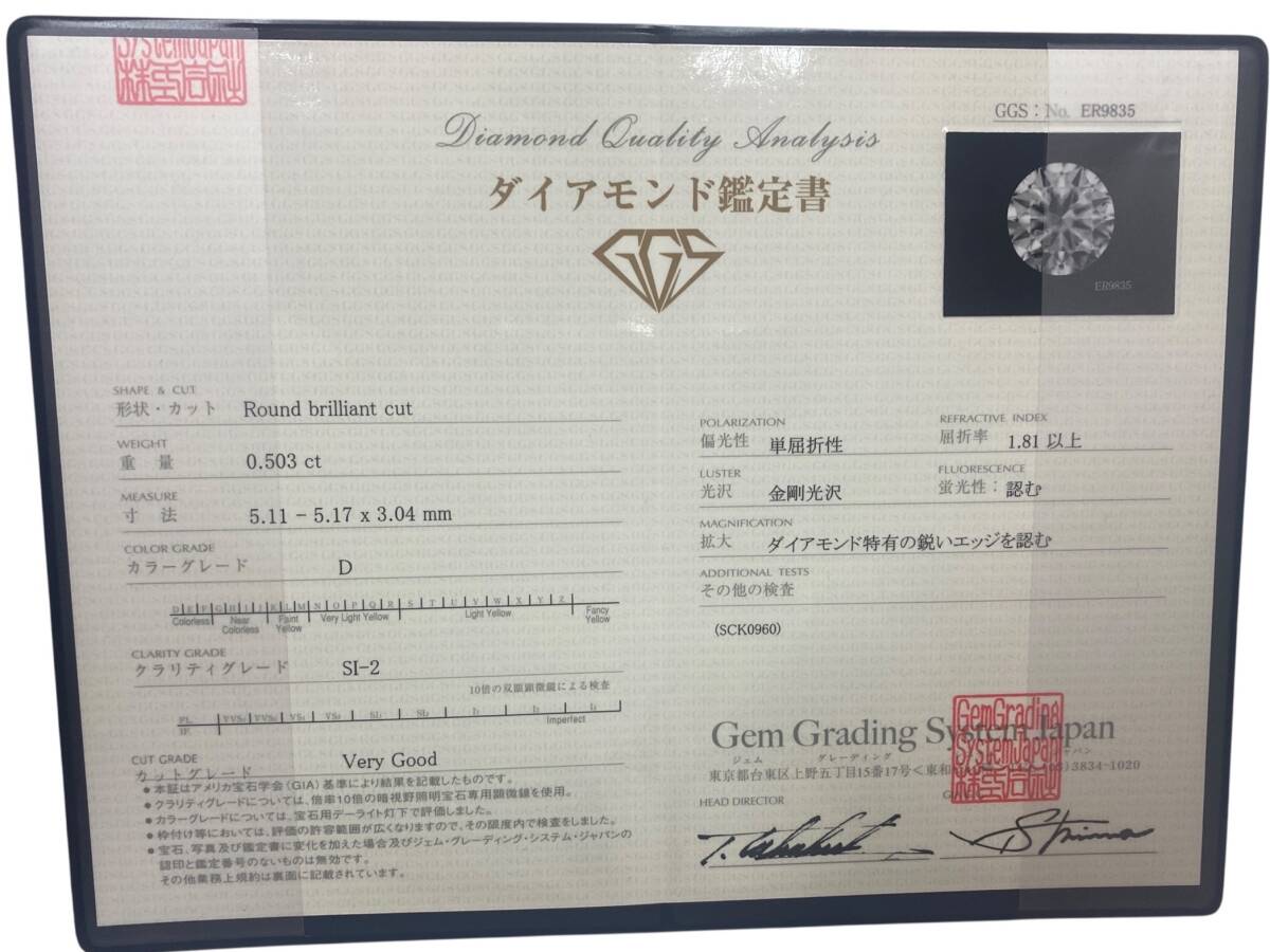 ダイヤモンド鑑定書2冊(Gem Grading System Japan)